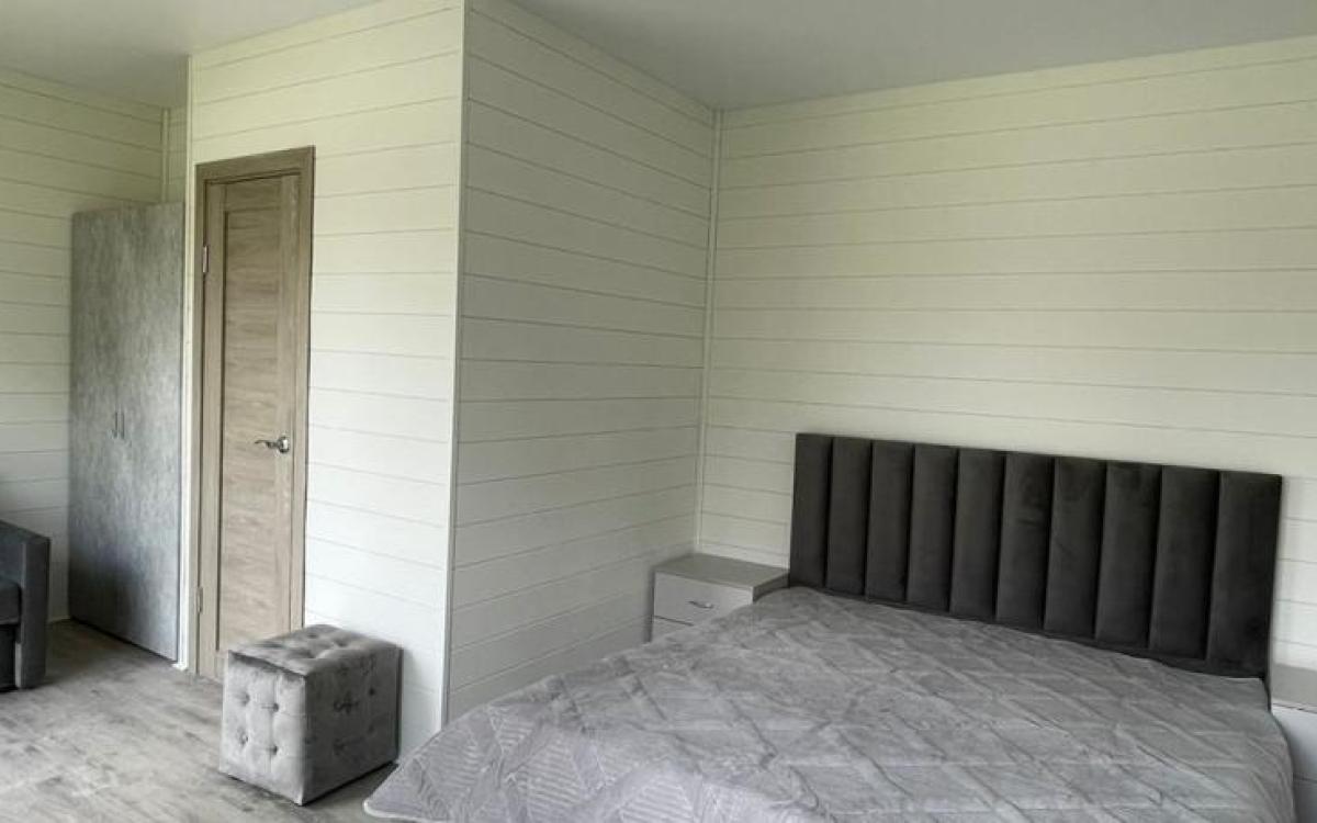 20кв., санузел с душевой, телевизор, кондиционер, холодильник, чайник, фен, двуспальная кровать + доп место раздвижной диванчик, встроенный шкаф, пуф, столик, сушилки; общая стиральная машинка и гладилка с утюгом.
