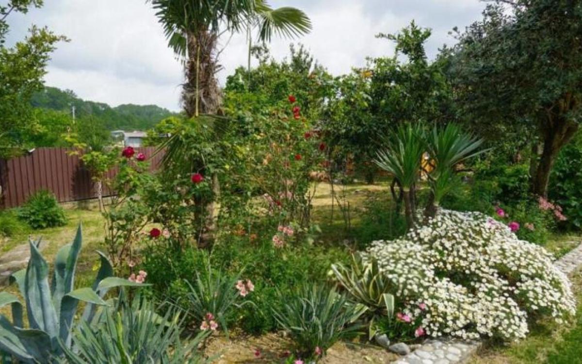 Территория дома окружена большим количеством зеленых насаждений, экзотических деревьев и цветов.
