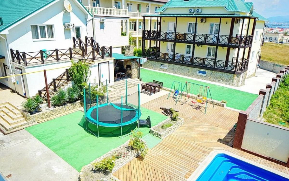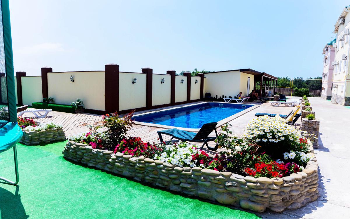 Бассейн под открытым небом 7/3м с современной очисткой воды. Благоустроенный внутренний двор: две беседки, шезлонги, столы, стулья, батут, качели, детская площадка.