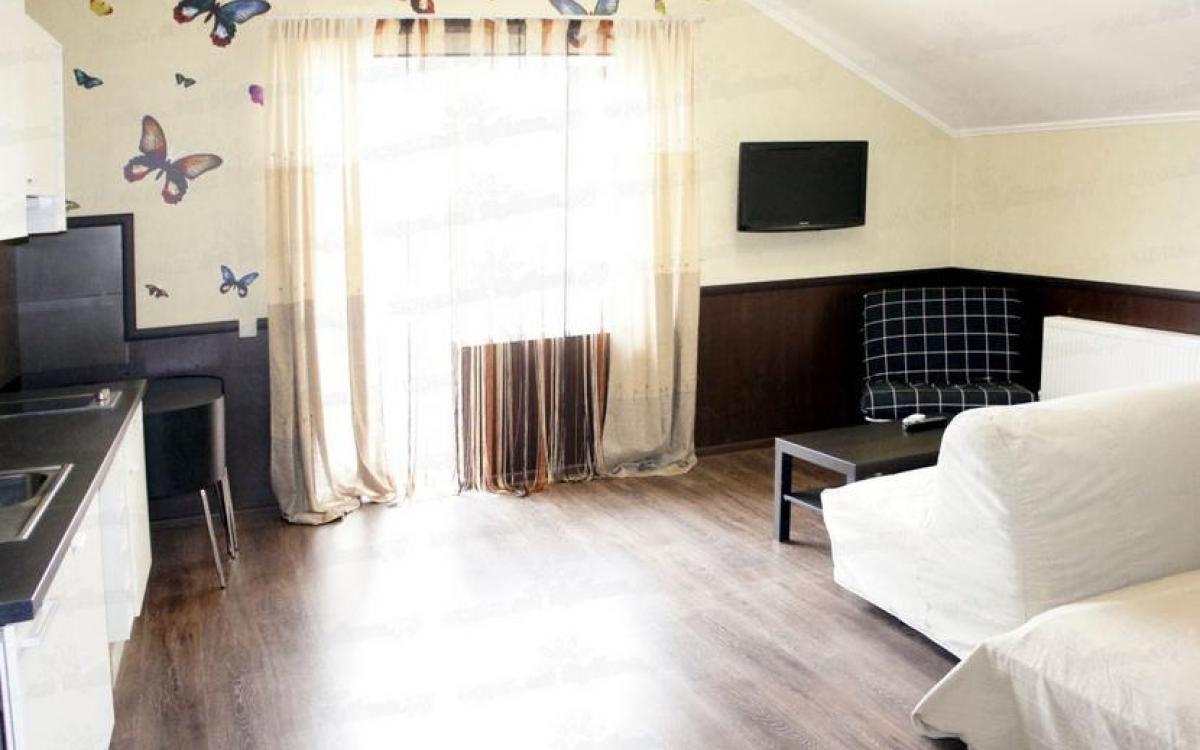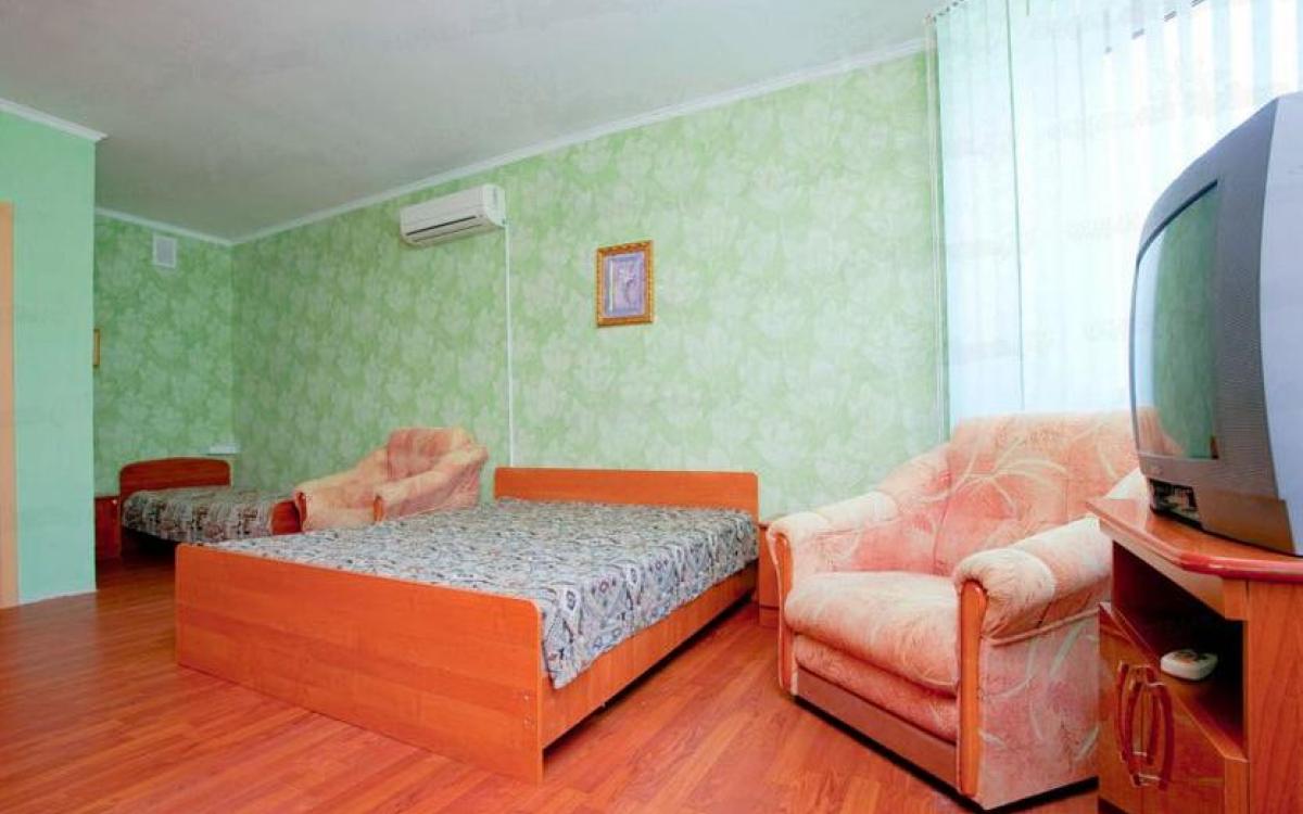 Двухкомнатные 4-5-ти местные номера (в обоих корпуса): санузел в номере, телевизор (в каждой комнате), холодильник, сплит-система, двуспальные или односпальные кровати, возможен раскладной диван, шкаф, тумбочки, журнальный столик, зеркало. Допместо не предусмотрено. Балкон под запрос в одном номере над кафе-столовой.