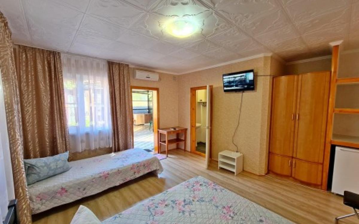 - 2-3-х местные номера со всеми удобствами: односпальные или двуспальная кровати , необходимая мебель, сплит-система, телевизор, холодильник, санузел с душевой кабиной. У входа мебель для отдыха. Возможно одноместное размещение. Возможно допместо-раскладная кровать.