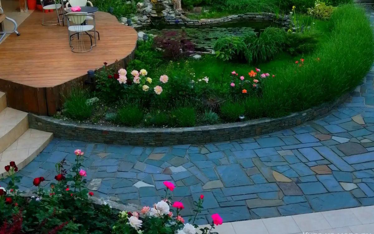 На территории находятся терраса с мебелью для отдыха, мангал, зеленый двор, прекрасный пруд с экзотическими рыбами и растениями.