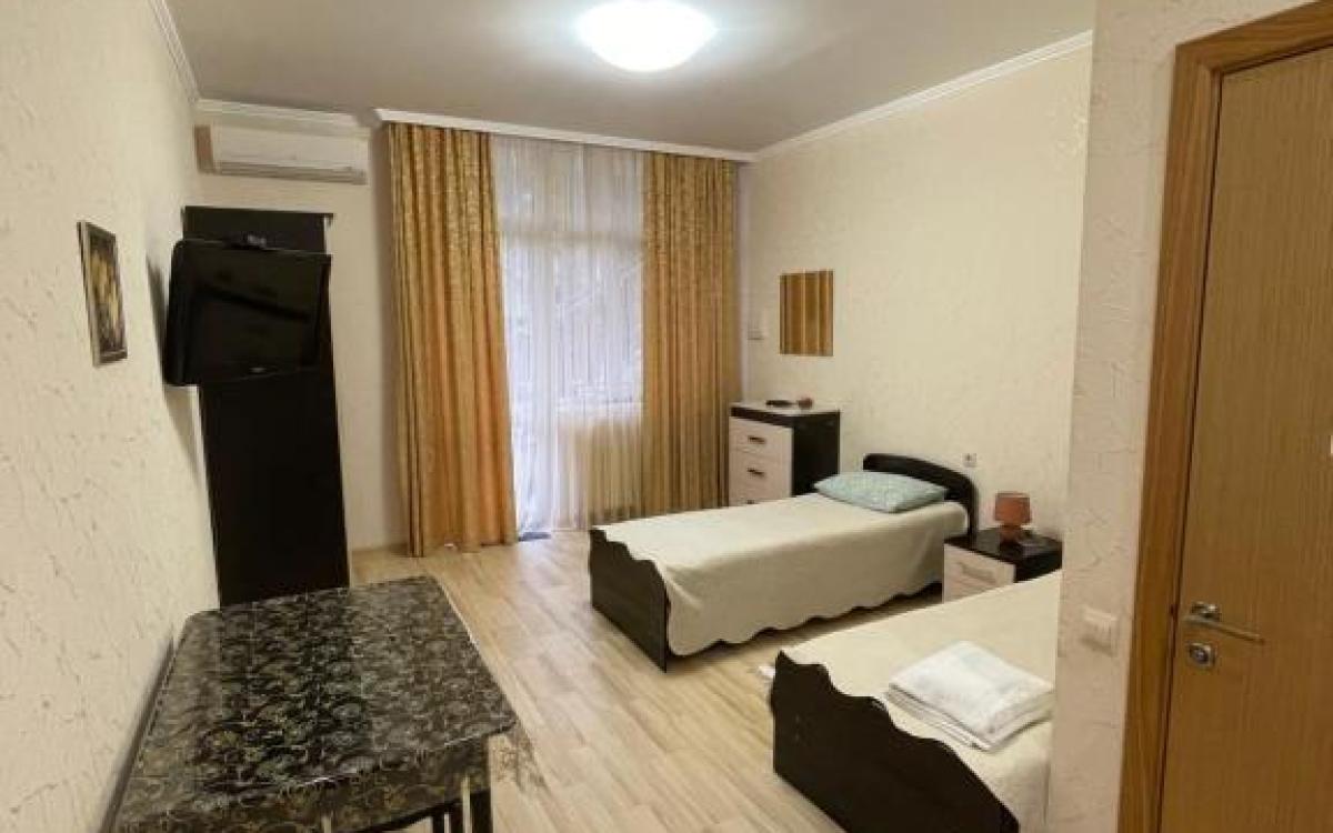 Размещение: трёхэтажное здание. Каждый номер гостевого дома оснащен необходимым набором корпусной мебели, туалетной комнатой с санузлом и душем (холодная и горячая вода круглосуточно), ЖК телевизором, холодильником, кондиционером (сплит-система), электрочайником, микроволновой печью, набором посуды.