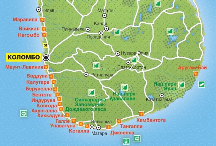 На Шри-Ланке много замечательных курортов с хорошими пляжами и неплохо развитой инфраструктурой. В силу географических особенностей острова, практически все курорты расположены на юго-западе страны.