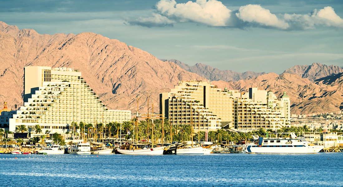 Эйлат — курорт, который расположен на Красном море. Для полноценного пляжного отдыха он вряд ли подходит, так как вход в море каменистый и неудобный, а кое-где и вовсе с понтона. Никаких особых достопримечательностей там нет, но зато идеальные условия для дайвинга и других водных развлечений, к тому же, этот курорт круглогодичный.