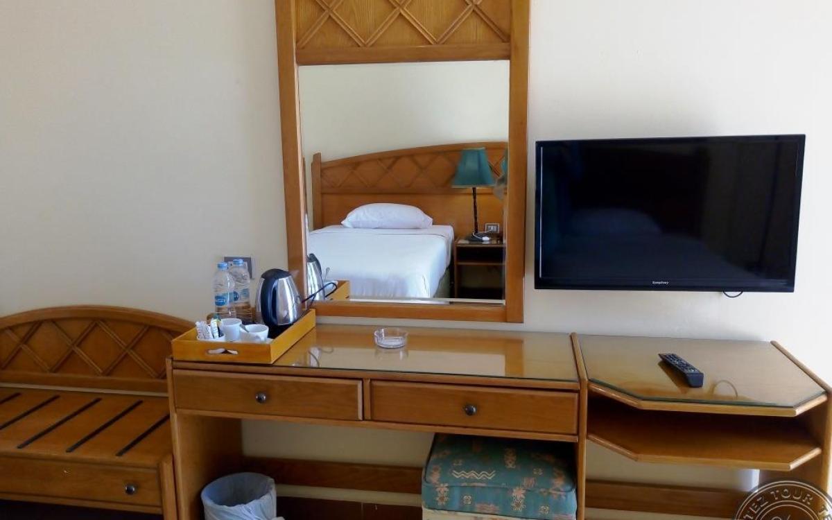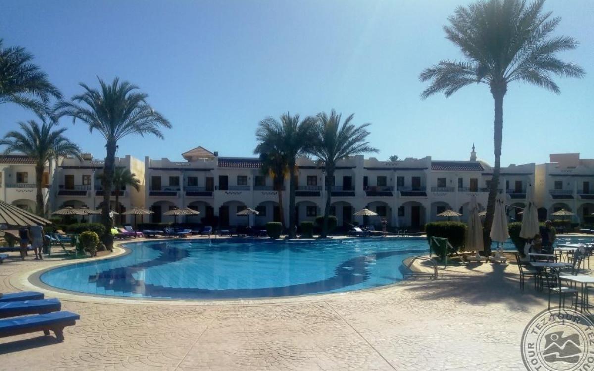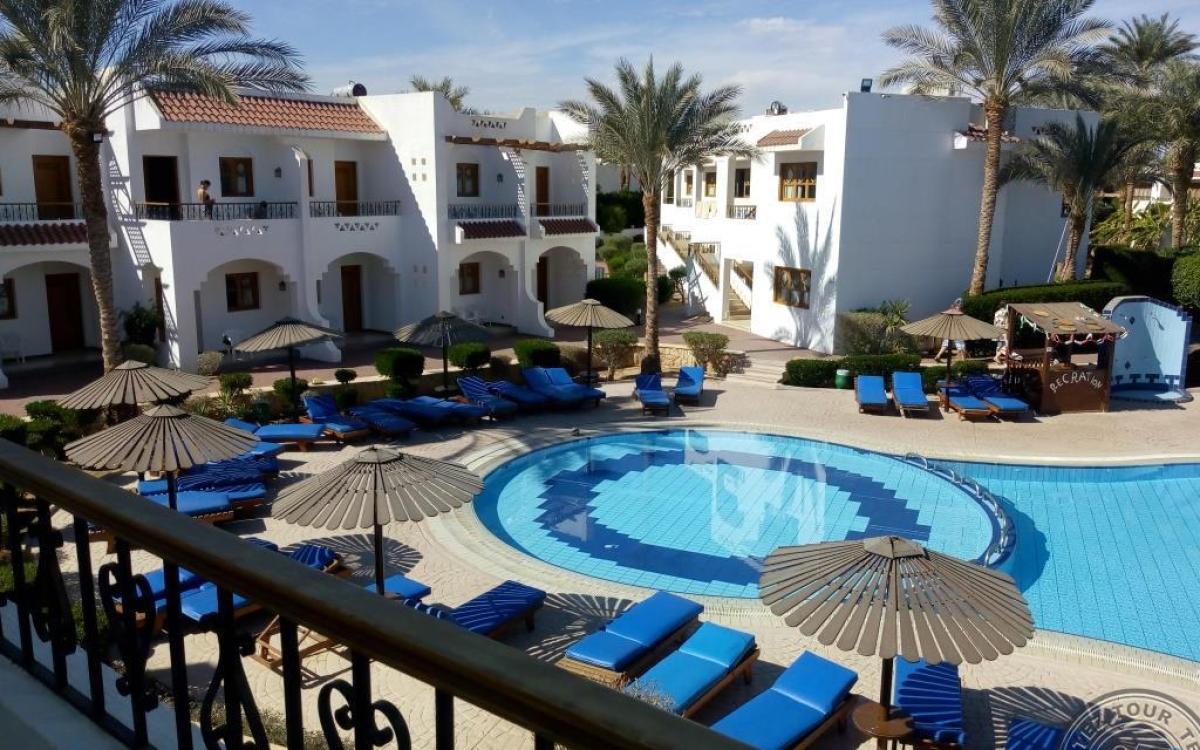 в 20 км от аэропорта Шарм-эль-Шейха, в 8 км от бухты Naama Bay, в 3 км от Старого города, в районе Hadaba, на втрой линии.