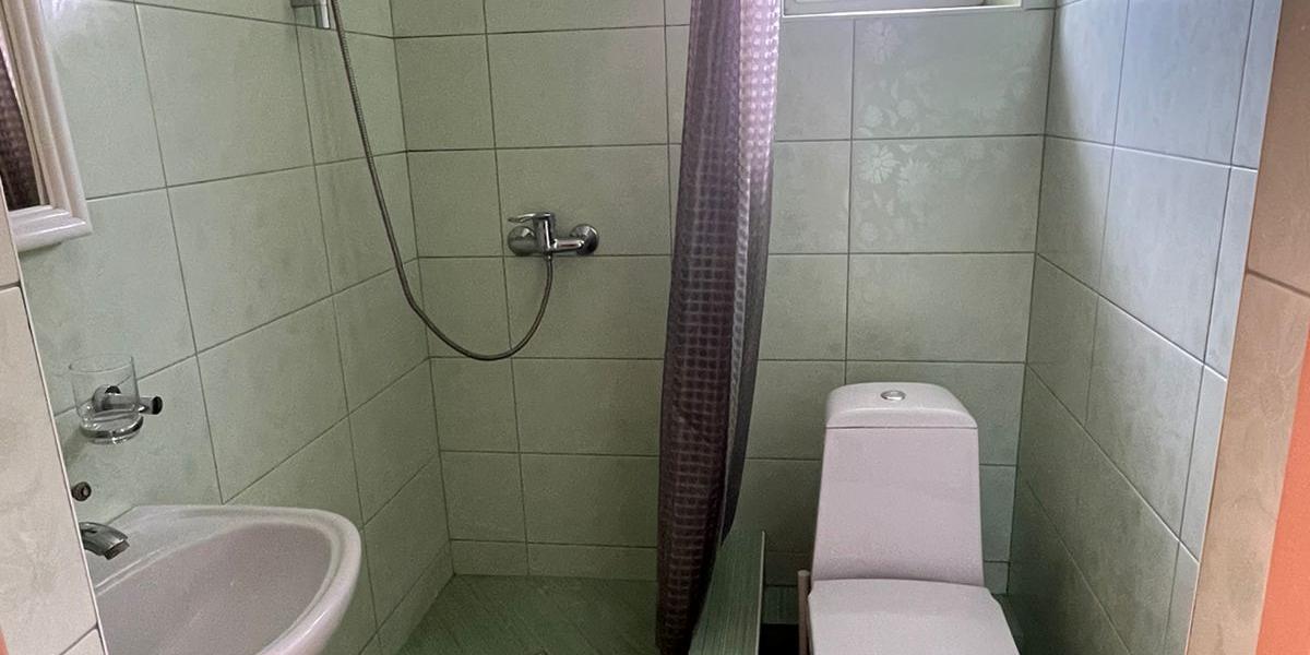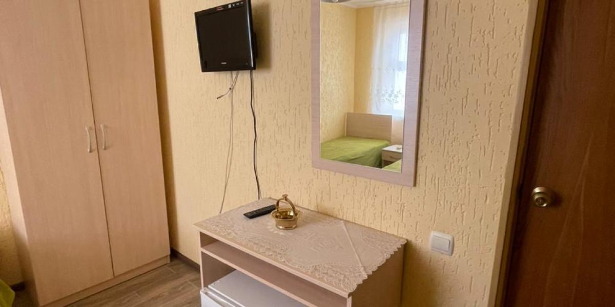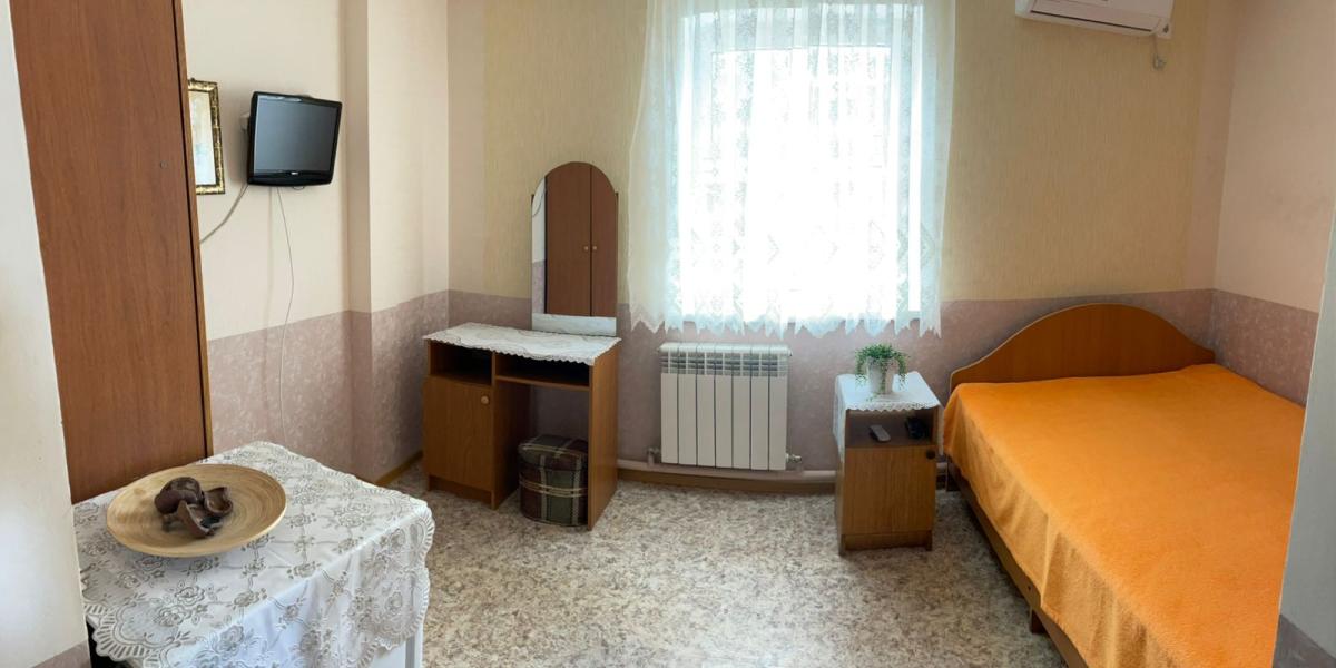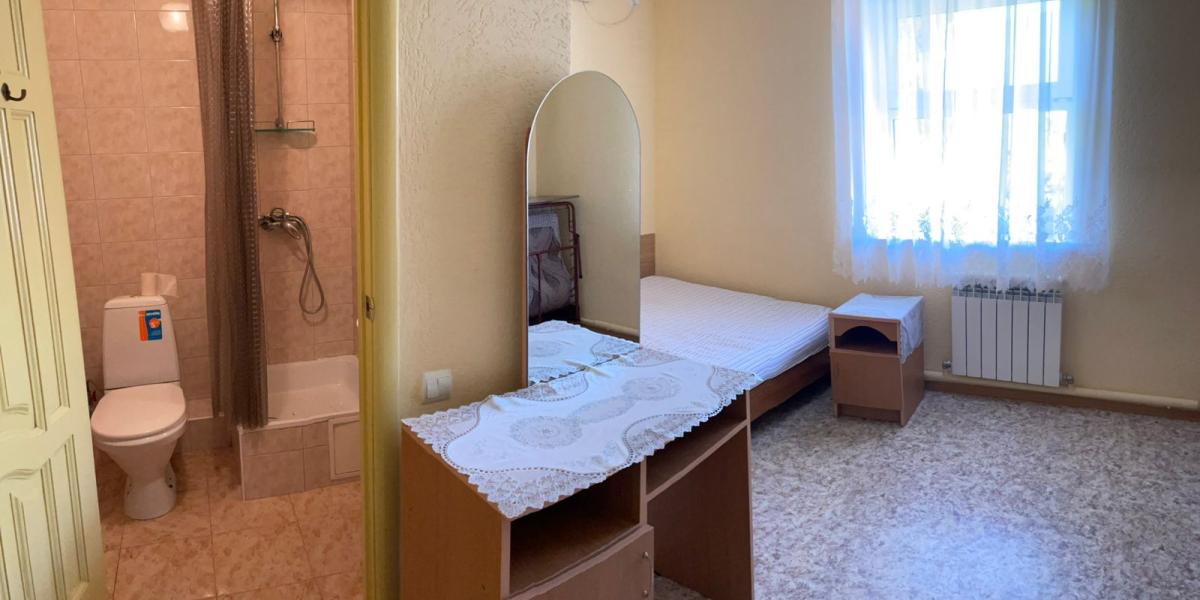 - 2-3-х местный номер со всеми удобствами: небольшие по площади , в номере односпальные или двуспальная кровати, шкаф, стулья, прикроватные тумбочки, стол, зеркало, кондиционер, телевизор, санузел с душевой кабиной. Холодильник в номере или рядом у входа. Возможно дополнительное место под запрос. Есть одноместное размещение.