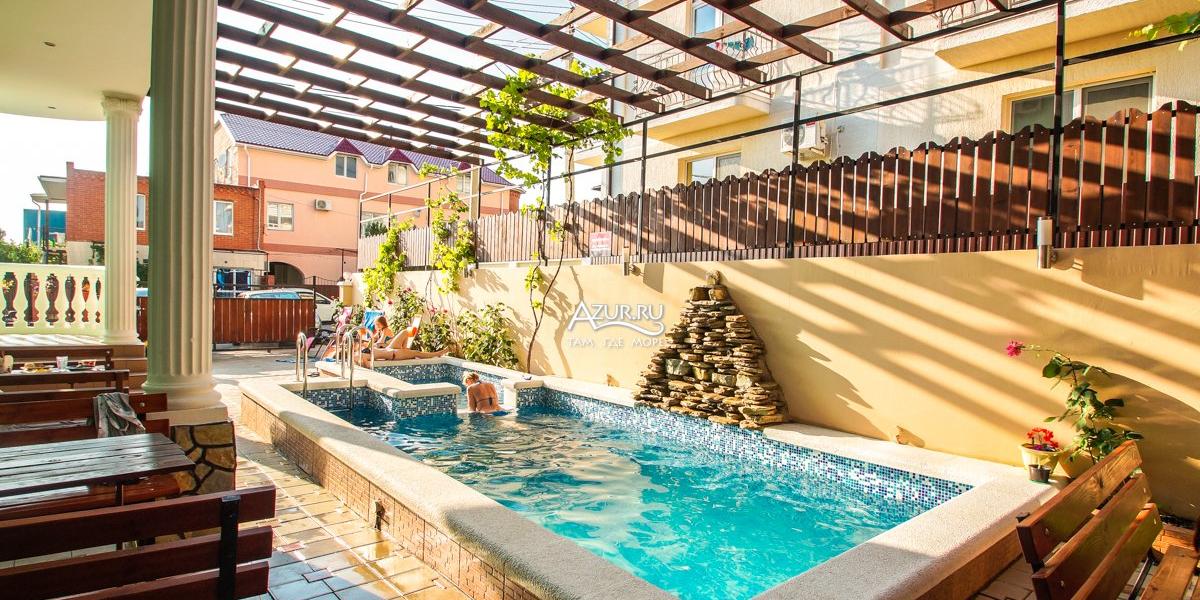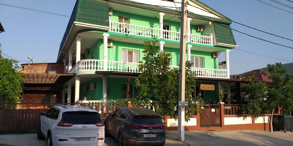 Месторасположение: Гостевой дом "Арго" находится в центральной части курортного поселка. Представляет собой современное кирпичное 3-х этажное здание, с огороженной территорией. Гостевой дом рассчитан на 40 – 50 человек. Внутренний двор оборудован местами для отдыха: большая крытая беседка, мангал, бассейн. В шаговой доступности магазины "Магнит", кафе и столовая, аптека. До центральной набережной и пляжа 12 минут ходьбы.