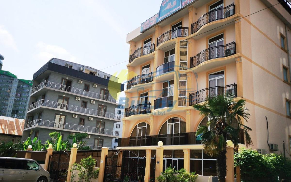 Расположен в Кобулети, на первой линии. Рядом магазины, супермаркет, кафе, сосновая роща. Широкий пляж