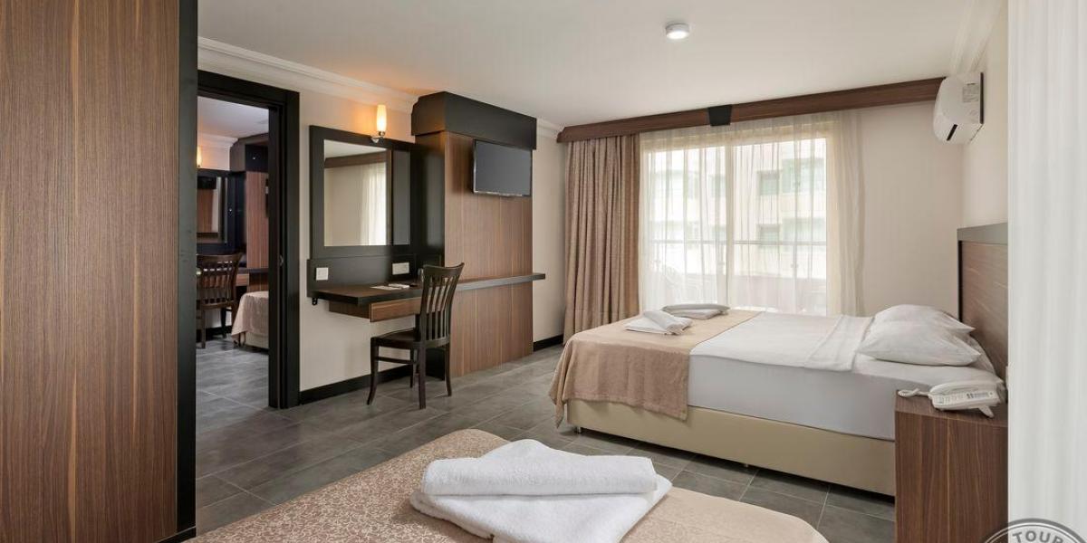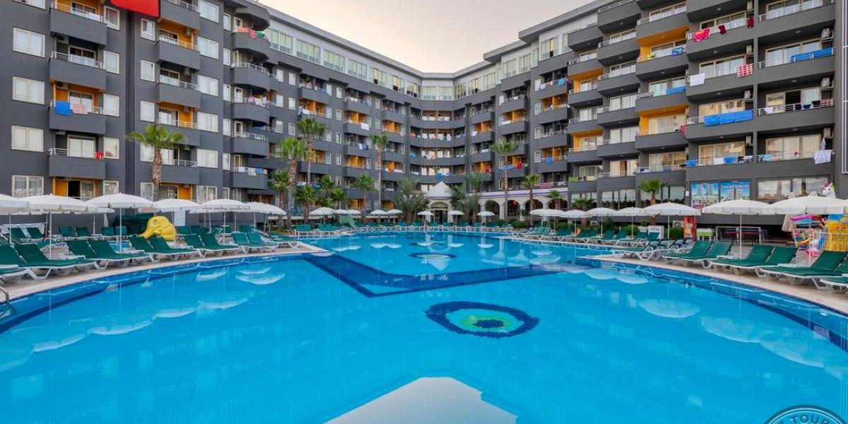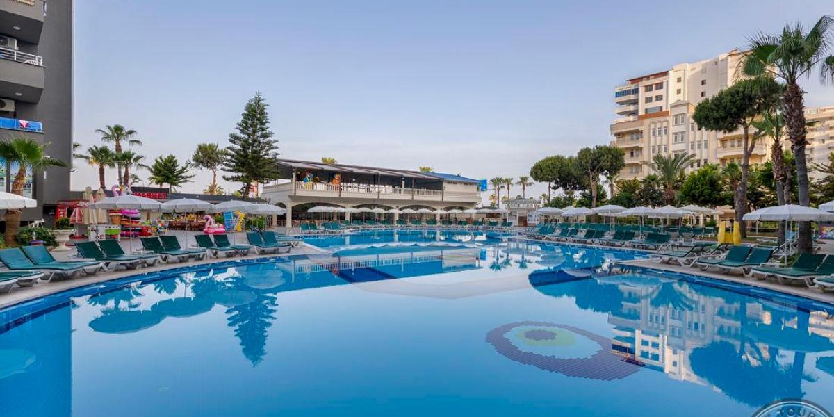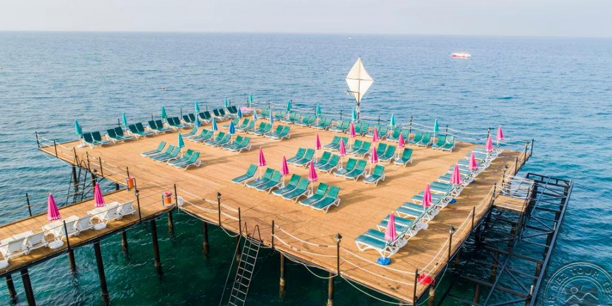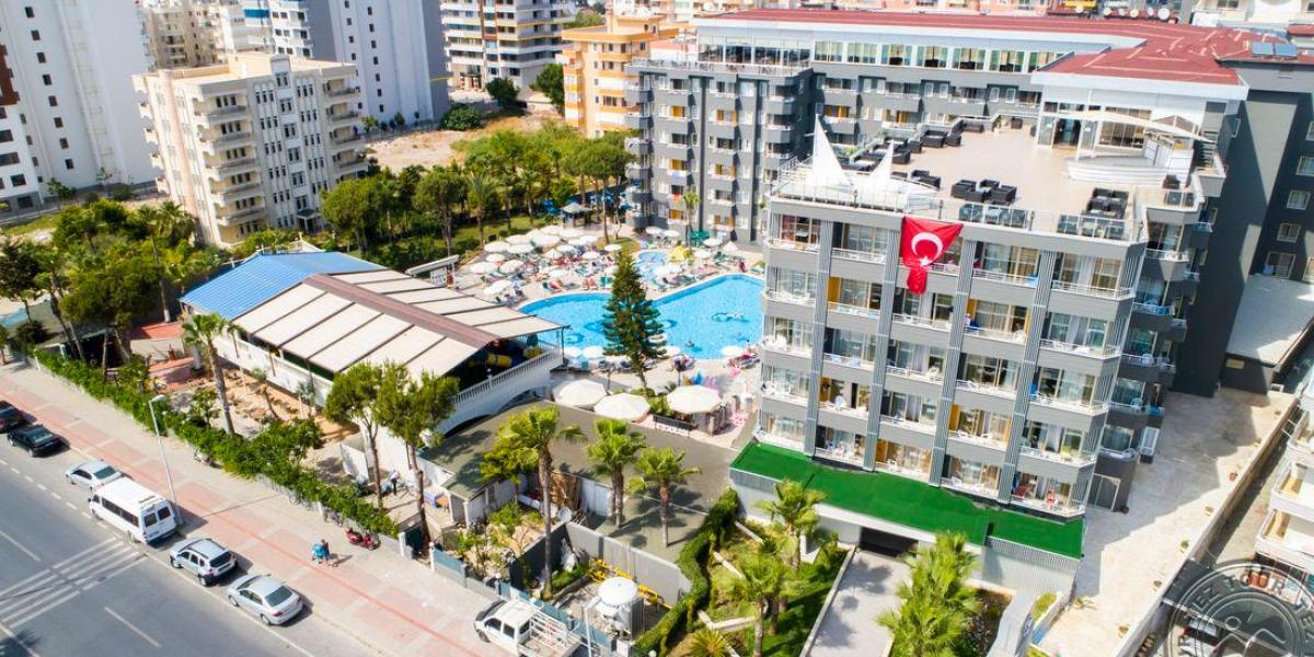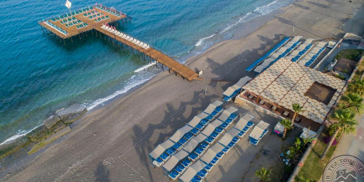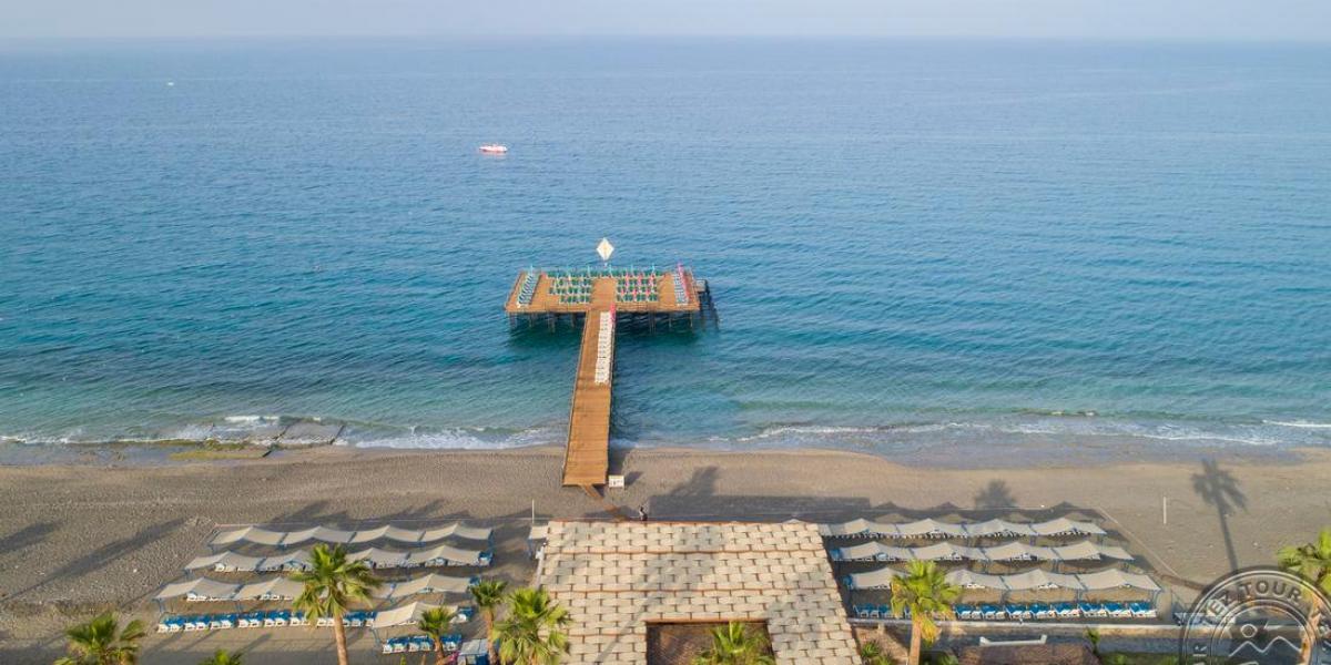 - в 135 км от аэропорта г. Анталья, в 7 км от г. Аланья, в поселке Махмутлар, через дорогу от собственного пляжа (проход по подземному переходу).