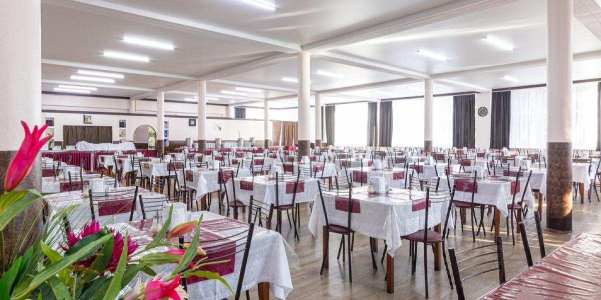 ПИТАНИЕ: Питание организовано 3 раза в день с элементами системы «Шведский стол» в стоимость проживания входит 3-х разовое питание в пансионате, в рационе всегда есть мясо, рыба, свежие овощи и фрукты, злаки, выпечка, большой выбор напитков. Просторный зал столовой вмещает всех желающих.