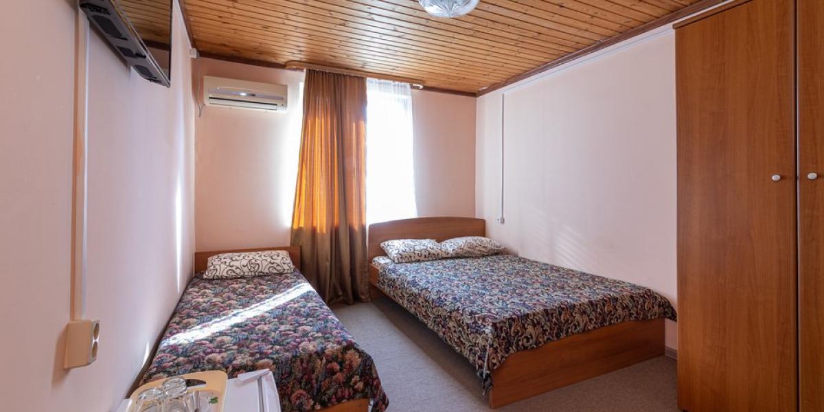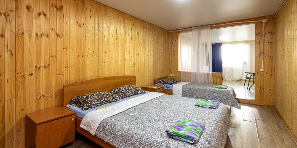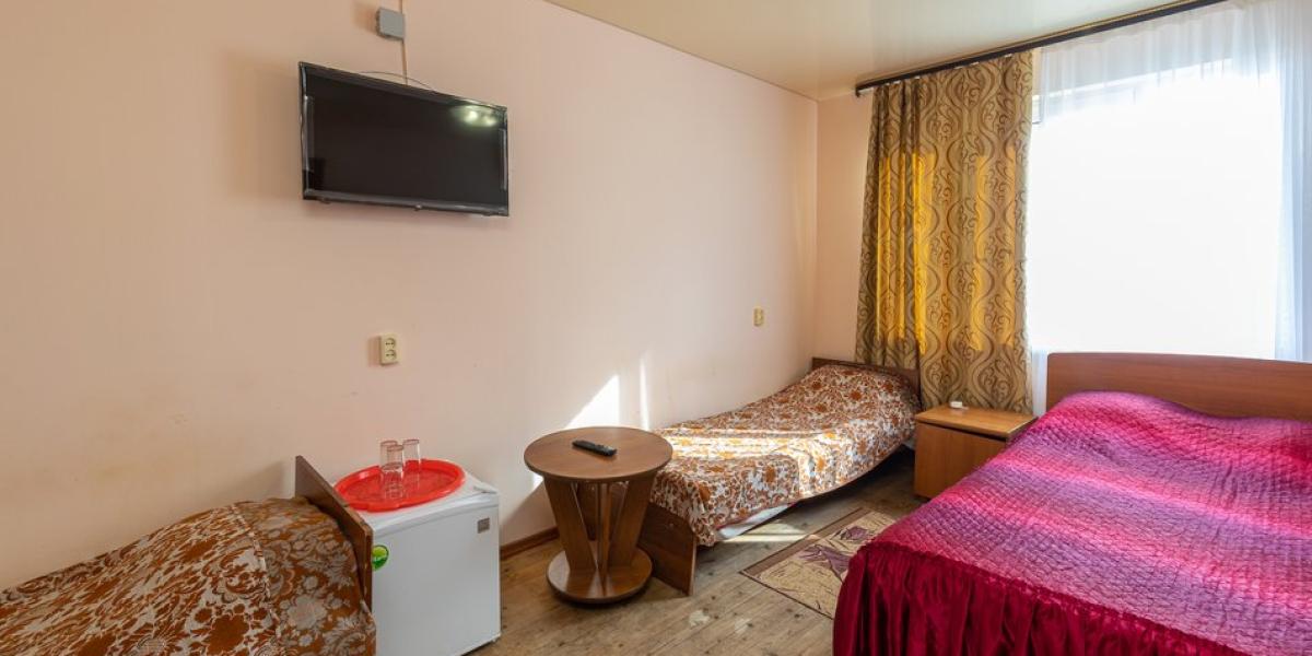 ПРОЖИВАНИЕ: В 2-х ,3-х и 4-х местных номерах, имеется вся необходимая мебель и техника для того, чтобы гости чувствовали себя максимально комфортно :санузел с душем, сплит система, телевизор, холодильник, электрочайник. Уборка номера производится и смена полотенец — раз в 3 дня.