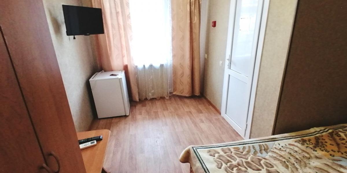 1-но местный номер в 2-х этажном корпус: в каждом номере санузел, душ, двуспальная кровать (размер 1,20 ), шкаф, прикроватные тумбочки, журнальный столик, сплит-система , холодильник, телевизор. Возможно размещение мамы+ребенка (стоимость по запросу).