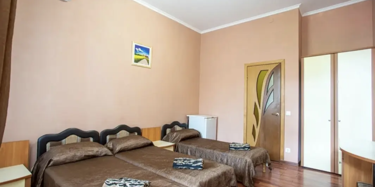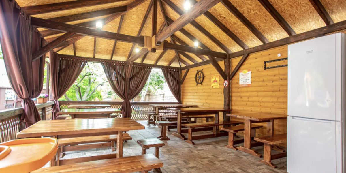 В каждом номере есть всё для комфортного отдыха: хорошая звукоизоляция, , санузел с душевой, сплит система, большой ЖК телевизор, кабельное TV, холодильник, быстрый интернет wi-fi в каждом номере.Во дворе оборудован мангал и зона барбекю, уютная беседка для отдыха с зоной Wi-Fi, для маленьких гостей — детская площадка.