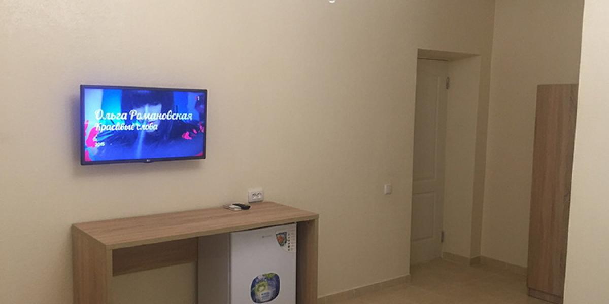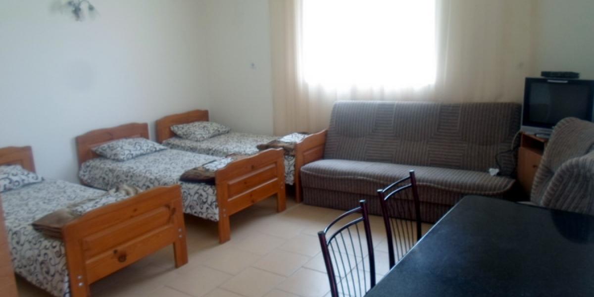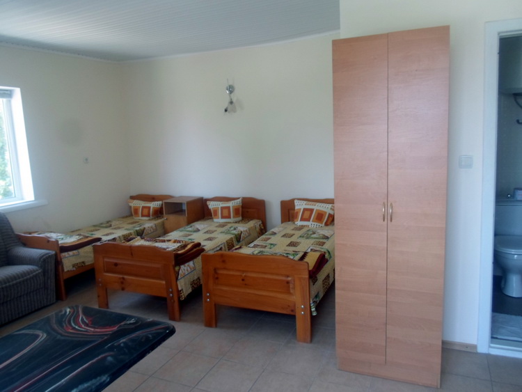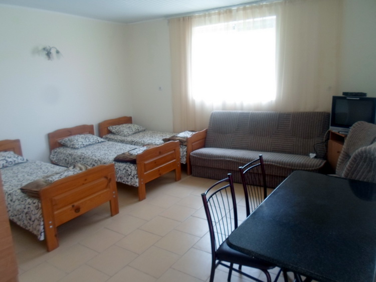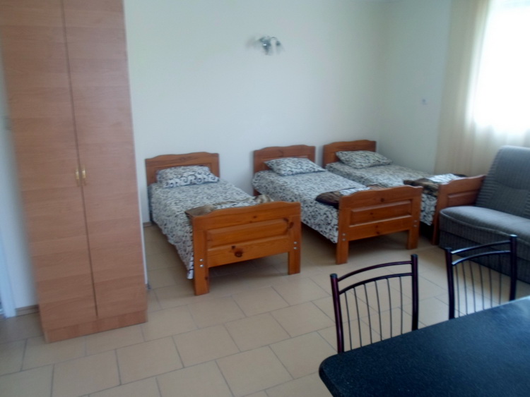 - Трехэтажный корпус: 2-3-4х местные просторные номера со всеми удобствами в новом корпусе 2016 года постройки. В каждом номере необходимая мебель (кровати, тумбы, шкаф, стол, стулья), холодильник, телевизор, электрочайник, кондиционер, санузел с душевой кабиной (горячая и холодная вода круглосуточно), пол – керамическая плитка, балконом c уличной мебелью, Wi-Fi.