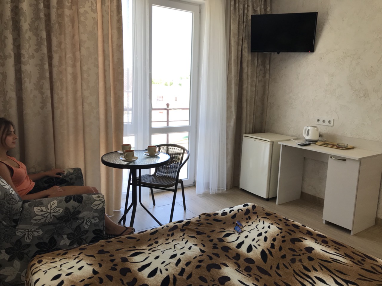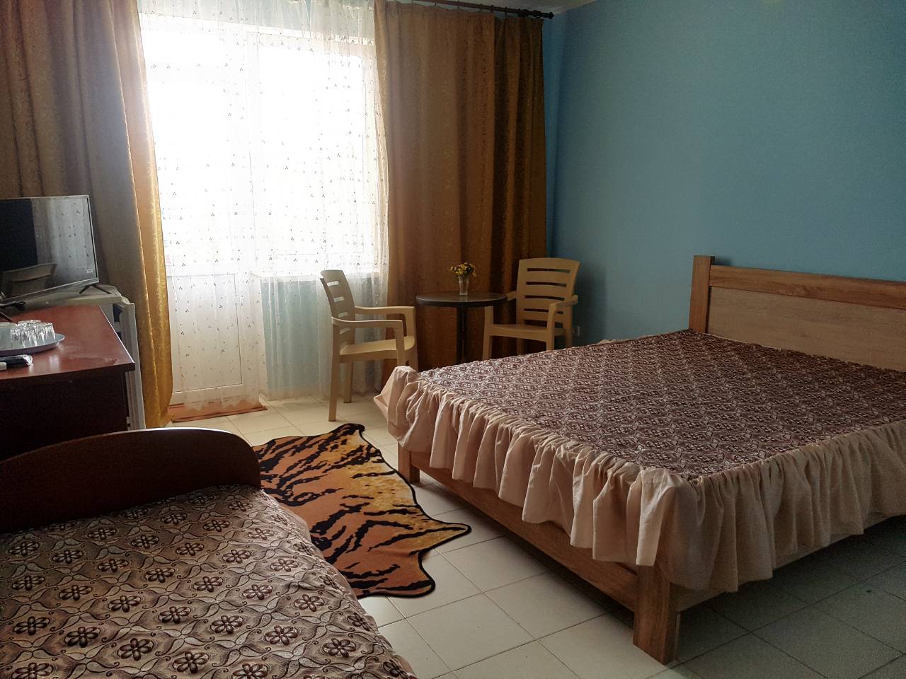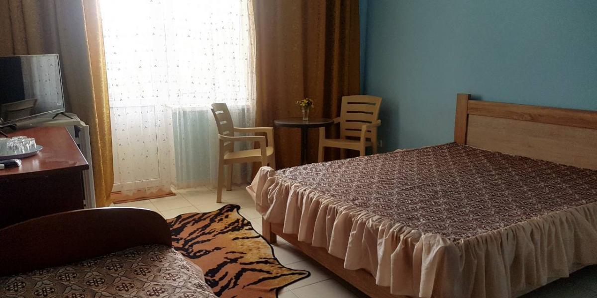 Размещение: Каждый номер оснащен необходимым набором корпусной и мягкой мебели, туалетной комнатой с санузлом и душем, (холодная и горячая вода круглосуточно), телевизором (кабельное ТВ), холодильником, кондиционером, набором постельных принадлежностей. Окна в номерах металлопластиковые с москитной сеткой.