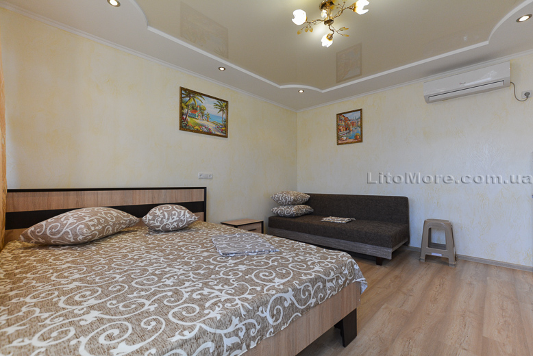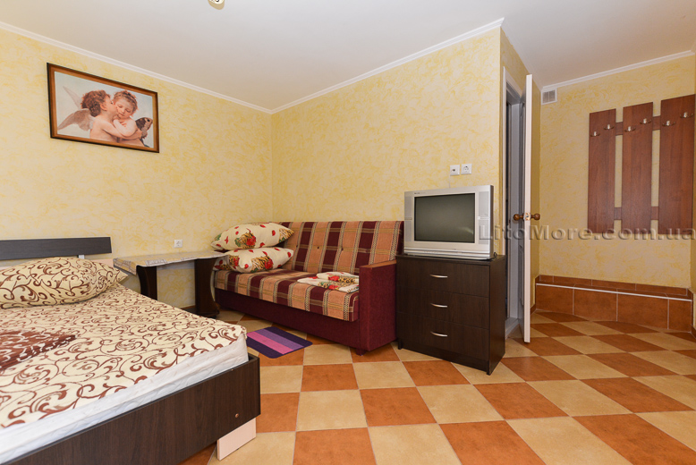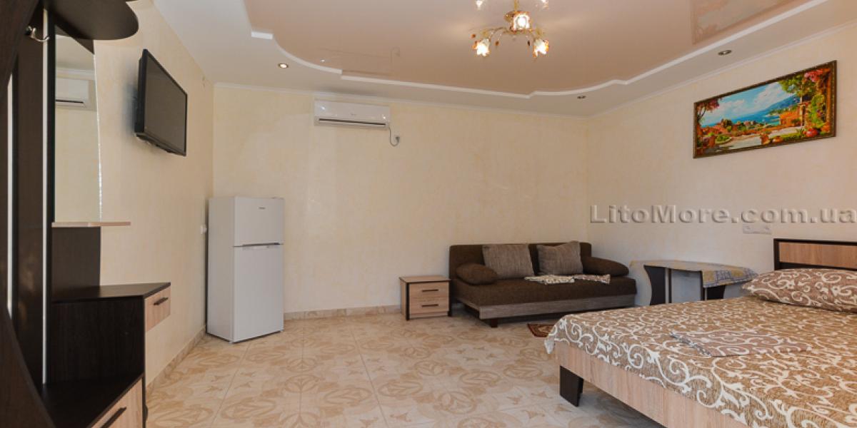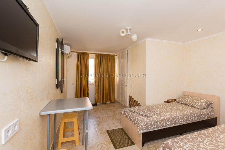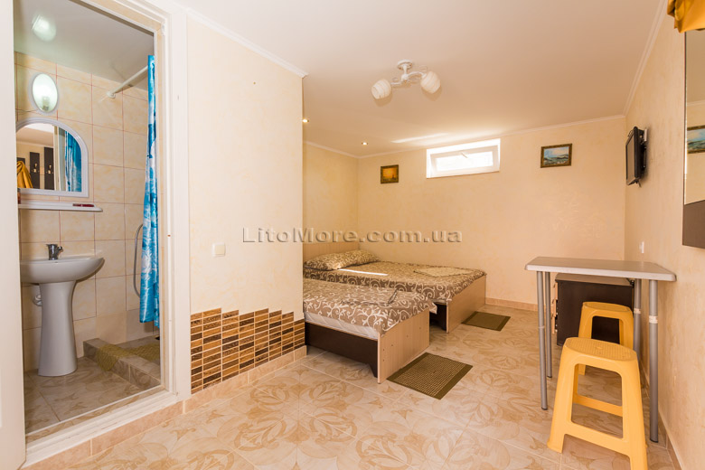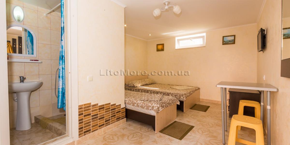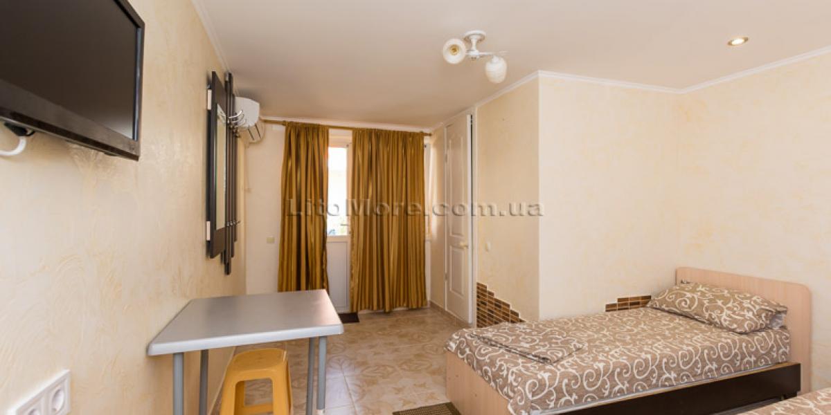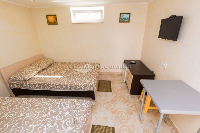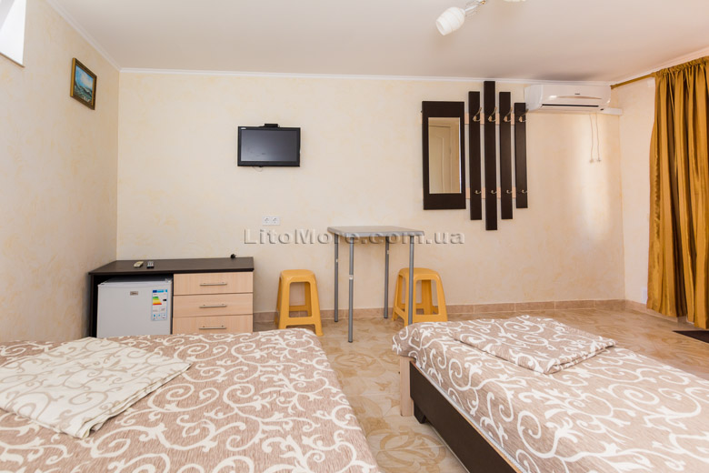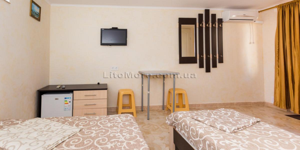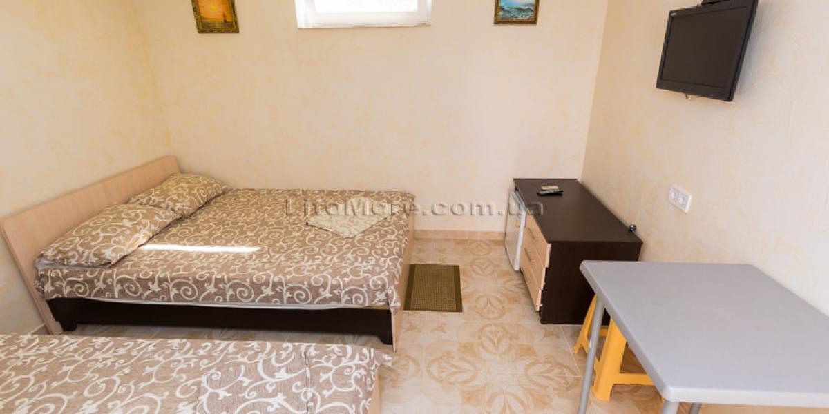 Размещение: Мини-база располагает комфортными номерами в трех 2-этажных корпусах постройки 2011, 2015 и 2016 годов. Отдыхающим предоставляются 2-3-4-местные номера. Все номера оборудованы кондиционером, холодильником, телевизором со спутниковым ТВ, санузлом с душем, туалетом, круглосуточной подачей горячей и холодной воды. Пользование Wi-Fi для отдыхающих бесплатно.