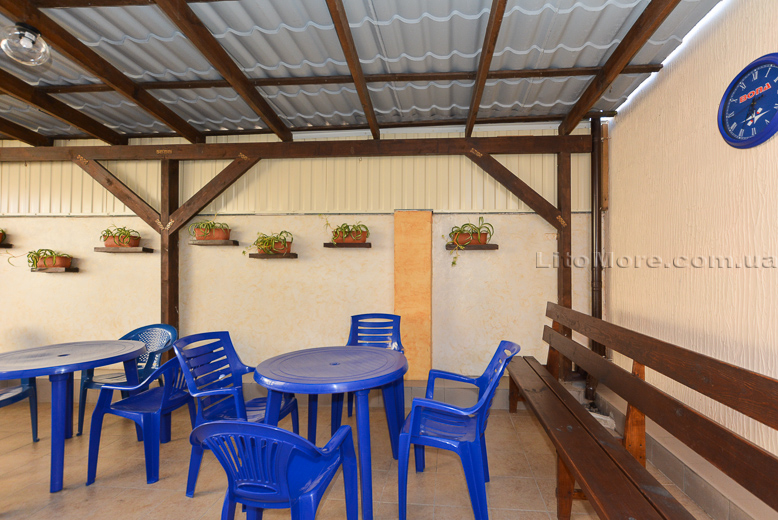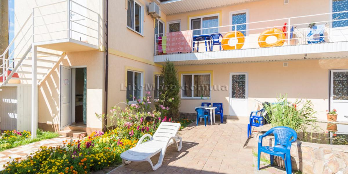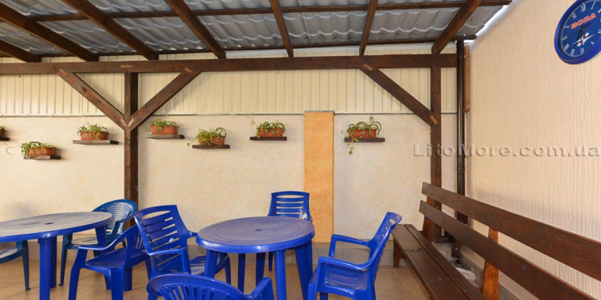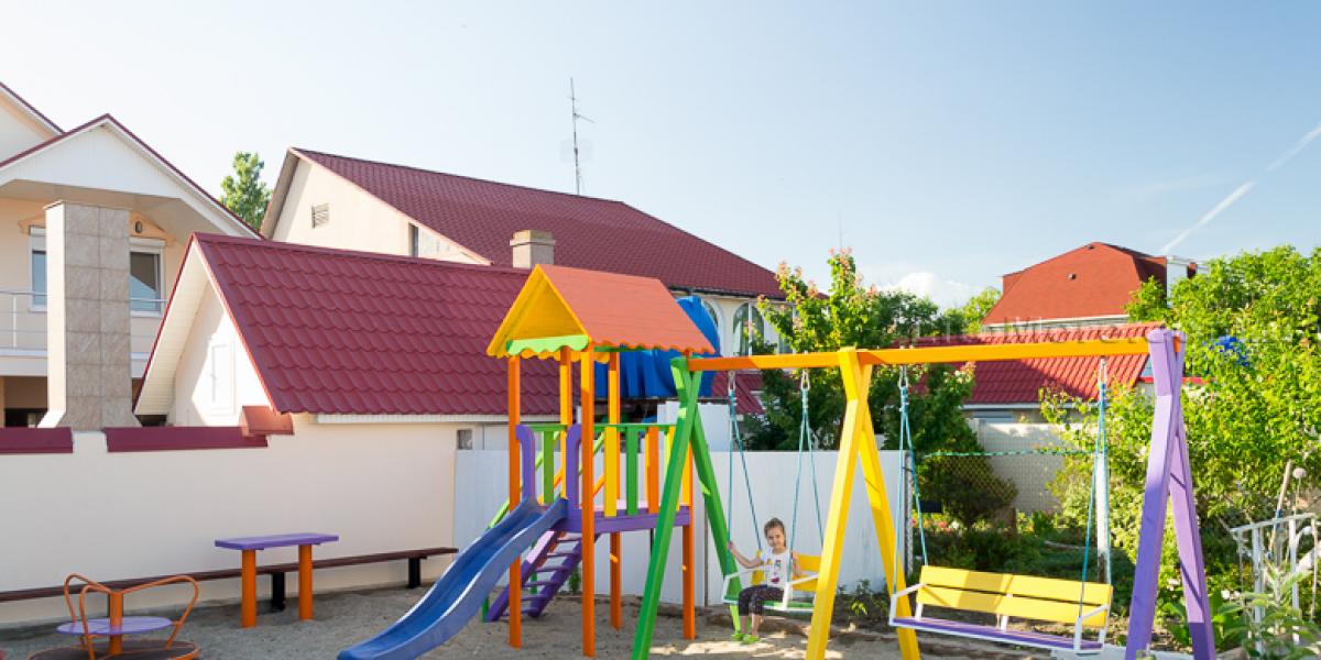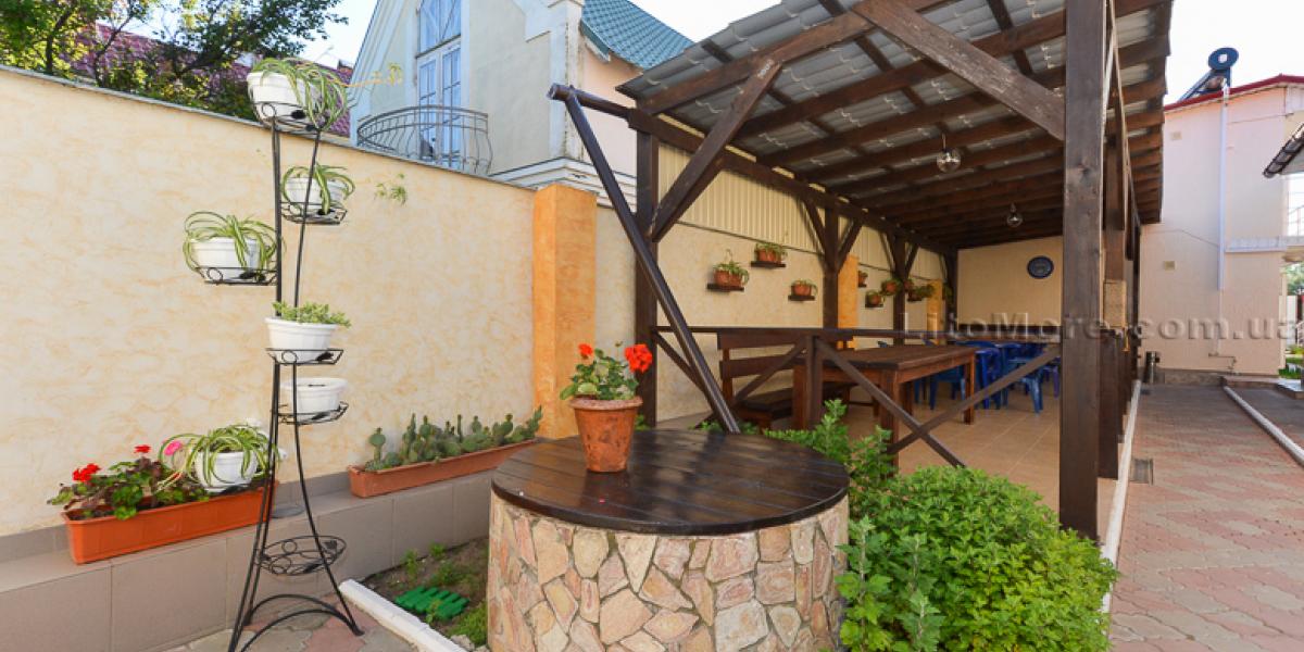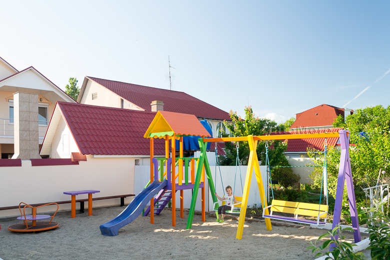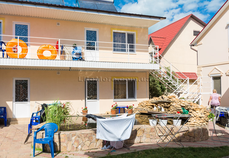 Инфраструктура: На территории есть большая беседка со столами, пруд с водопадиком. В отдельном дворике находятся мангалы, есть детская площадка. Рядом с мини-базой отдыха расположены кафе и рестораны, магазины и торговые павильоны. На пляже предлагаются различные развлечения: водные горки, катамараны, гидроциклы, «бананы», парапланы, «тарзанки» и многое другое.