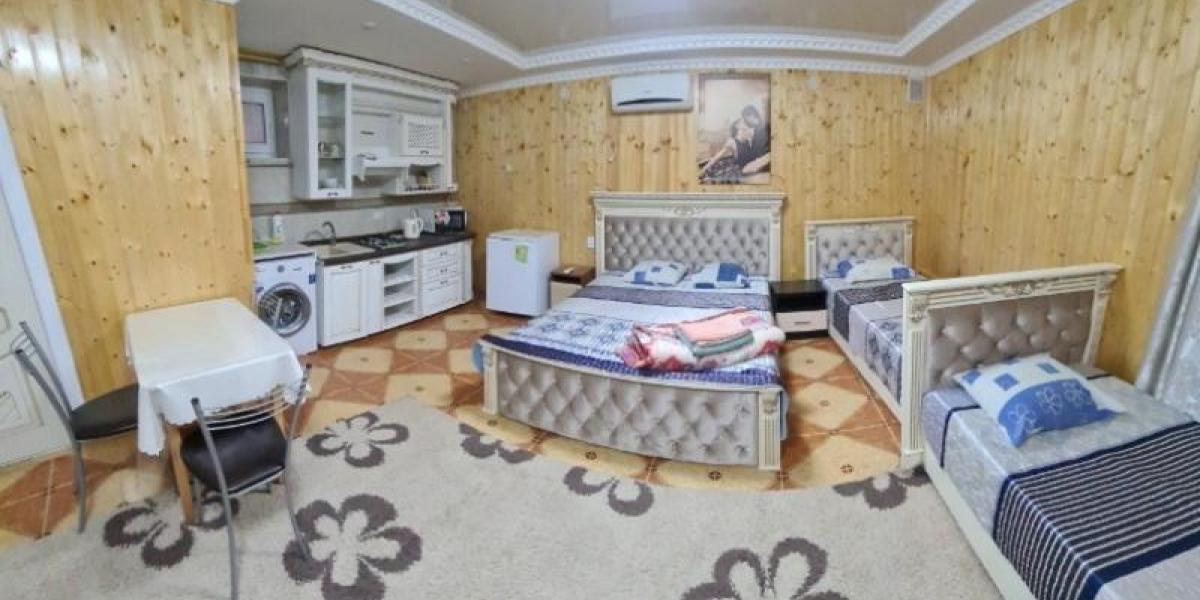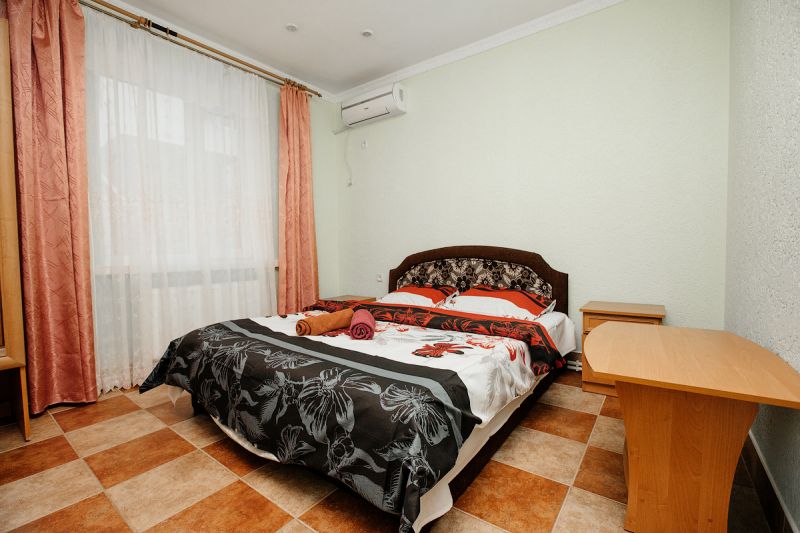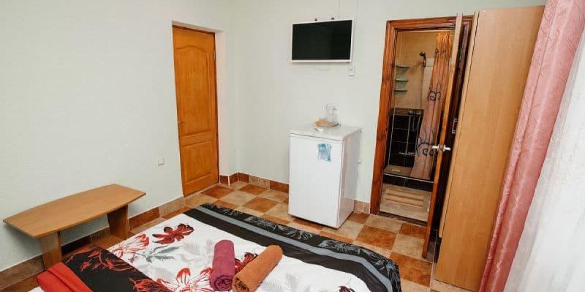 Размещение: комплекс из трех корпусов. Каждый номер гостевого дома оснащен необходимым набором корпусной мебели, туалетной комнатой с санузлом и душем (холодная и горячая вода круглосуточно), ЖК телевизором, холодильником, кондиционером (сплит-система).