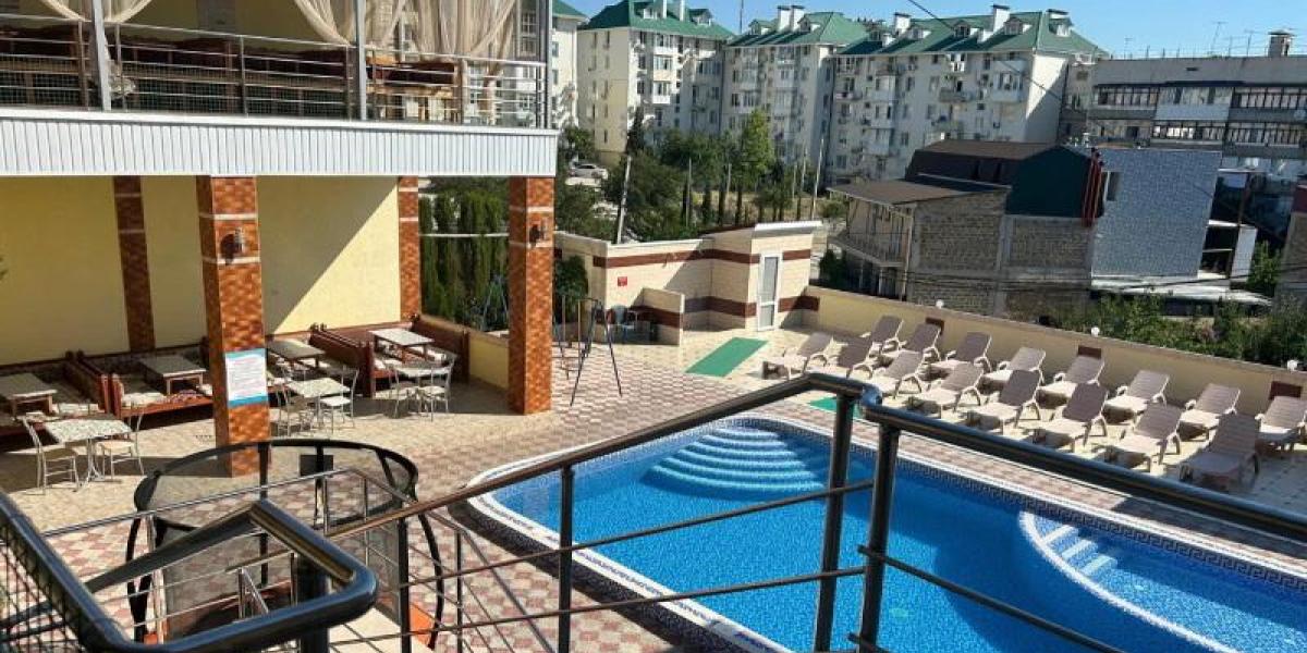 Уютный дворик с местами для отдыха, бассейн. Детская игровая зона с детским бассейном.
