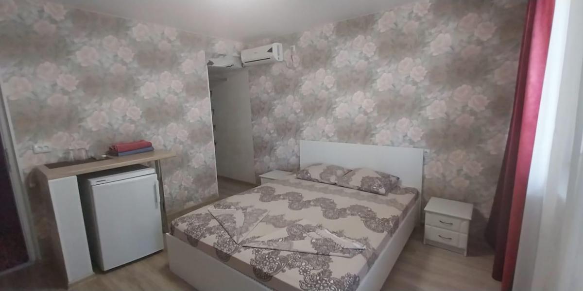 Размещение: комплекс из двух корпусов. Каждый номер гостевого дома оснащен необходимым набором корпусной мебели, туалетной комнатой с санузлом и душем (холодная и горячая вода круглосуточно), ЖК телевизором, холодильником, кондиционером (сплит-система).