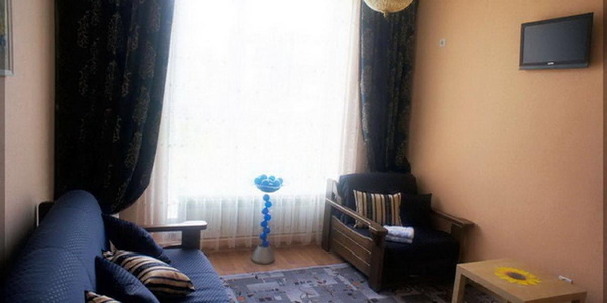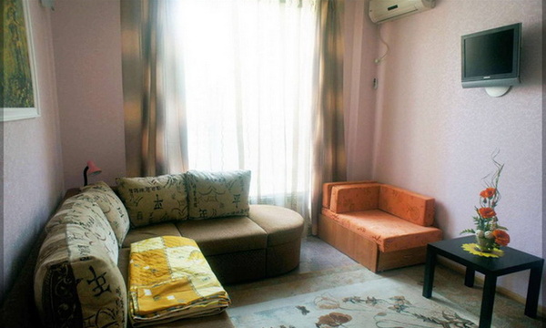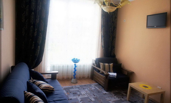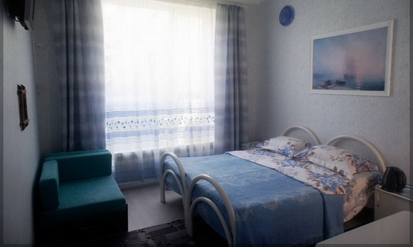 Размещение: двухэтажное здание. Каждый номер гостевого дома оснащен необходимым набором корпусной мебели, туалетной комнатой с санузлом и душем (холодная и горячая вода круглосуточно), ЖК телевизором, холодильником, кондиционером (сплит-система), электрочайником, микроволновой печью, набором посуды, постельных и туалетных принадлежностей. К услугам отдыхающим утюг и гладильная доска. Тенистый дворик. Пользование Wi-Fi в общественных местах для отдыхающих бесплатно.