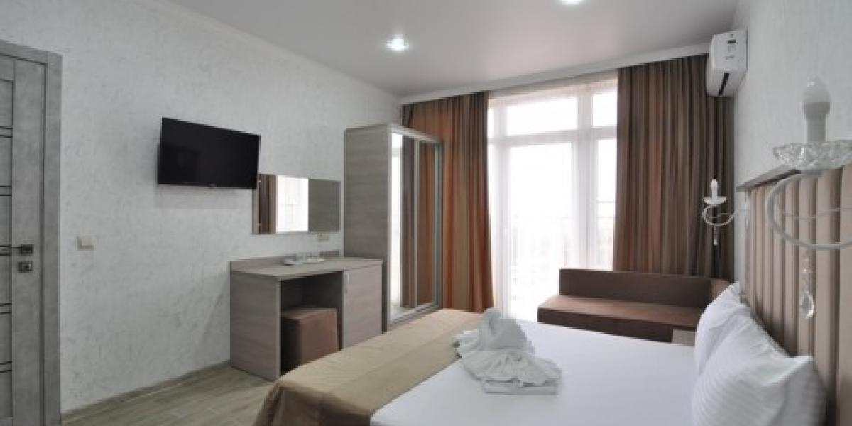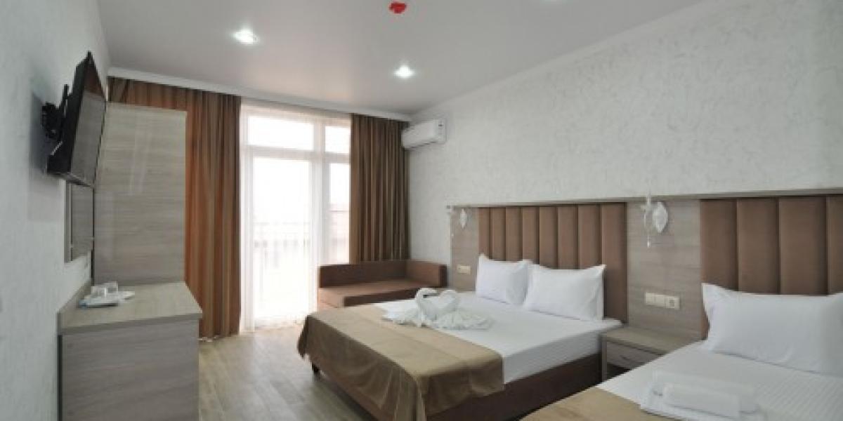 Все номера имеют качественную отделку, современную бытовую технику, авторское решение в деталях интерьера, уютный дизайн. Самое главное - всё новое! Гостям предоставляется размещение в комфортабельных 2х, 3х и 4х местных однокомнатных номерах со всеми удобствами, а также в просторных и вместительных 2х комнатных номерах вместимостью до 6 человек. Все номера с балконом. Половина номеров с видом на ПЛЯЖ И МОРЕ (запрашивать отдельно, за вид предусмотрена доплата примерно 25-45 уе за весь период отдыха).