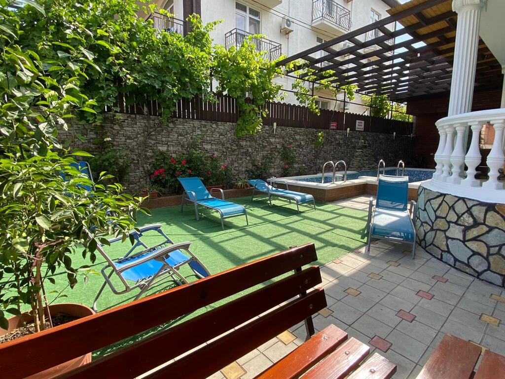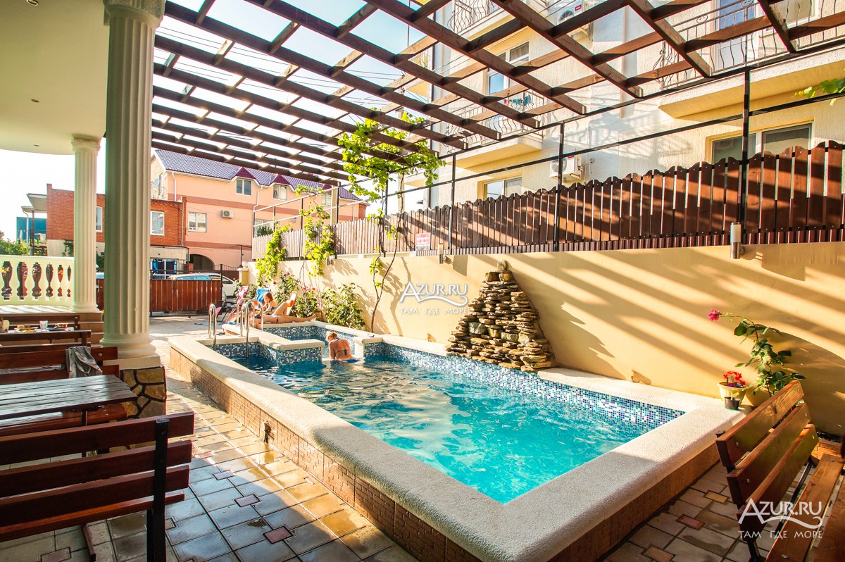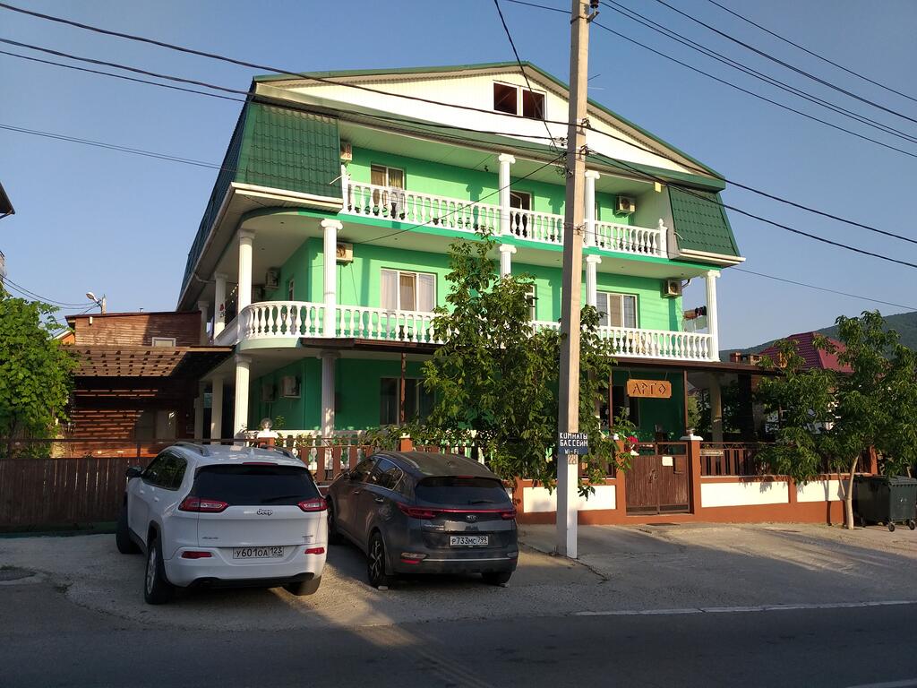 Месторасположение: Гостевой дом "Арго" находится в центральной части курортного поселка. Представляет собой современное кирпичное 3-х этажное здание, с огороженной территорией. Гостевой дом рассчитан на 40 – 50 человек. Внутренний двор оборудован местами для отдыха: большая крытая беседка, мангал, бассейн. В шаговой доступности магазины "Магнит", кафе и столовая, аптека. До центральной набережной и пляжа 12 минут ходьбы.