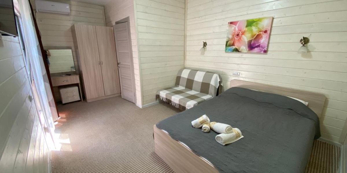 • Номера «семейные»: 2-комнатные 4-х местные номера. В номерах двуспальная кровать, диван-кровать, шкаф, стулья, стол, журнальный столик, туалетный столик, прихожая, вешалка, зеркало, кухонный гарнитур, обеденная зона, кондиционер, холодильник, цифровое ТВ, Wi-Fi интернет, СВЧ, эл. чайник, посуда, балкон, уличная мебель, санузел в номере.
