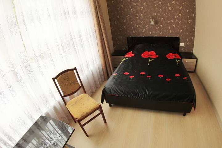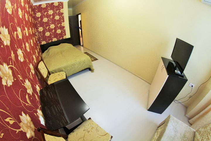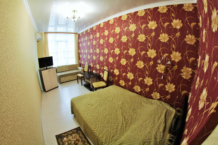 - Номера «стандарт»: 2-3х местные номера со всеми удобствами. В номерах двуспальная кровать, диван, шкаф, прикроватные тумбочки, журнальный столик, телевизор, холодильник, кондиционер, санузел, Wi-Fi. Отдельная кухня и балкон на два номера.