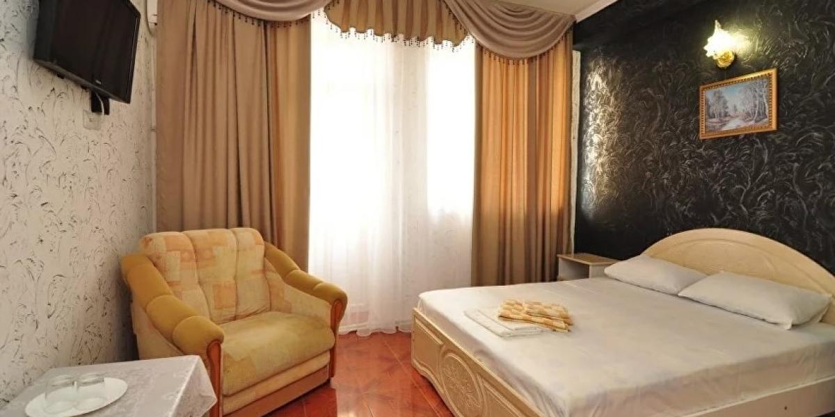 Однокомнатные 2-х , 3-х, 4-х местные номера со всеми удобствами: санузел в номере (горячая и холодная вода постоянно), кровати или раскладные диваны, шкаф, стулья, тумбочки, журнальный столик, вешалка, зеркало, кондиционер , холодильник, телевизор, интернет, балкон.