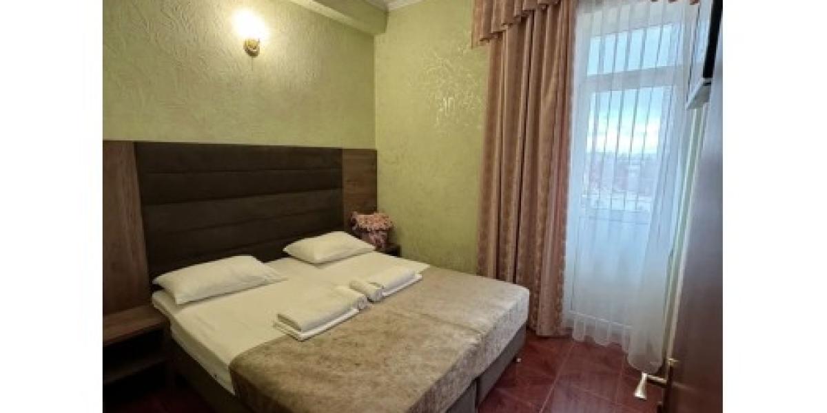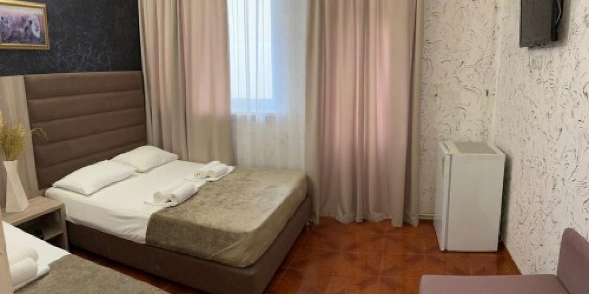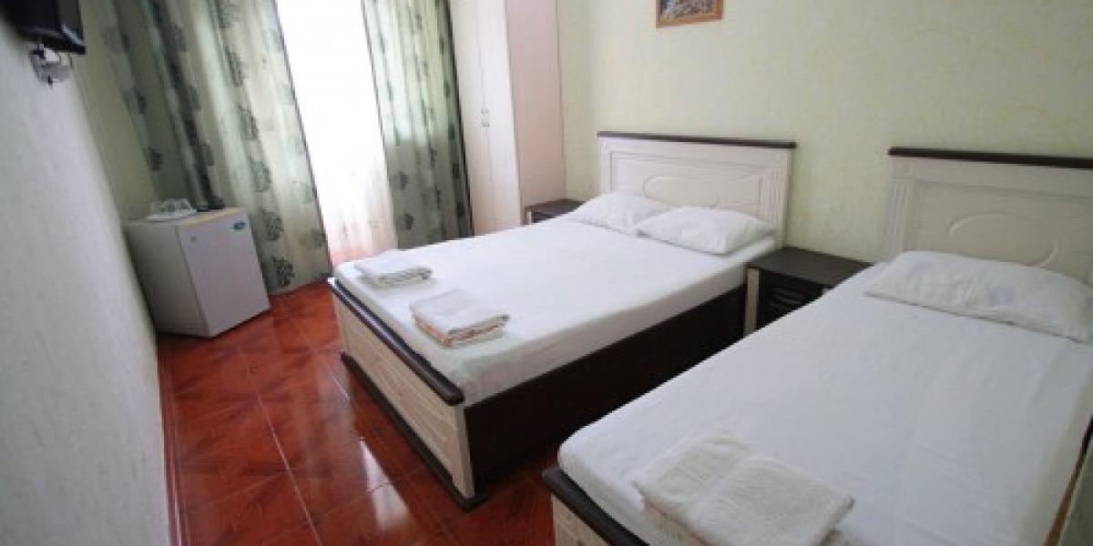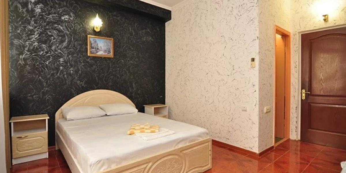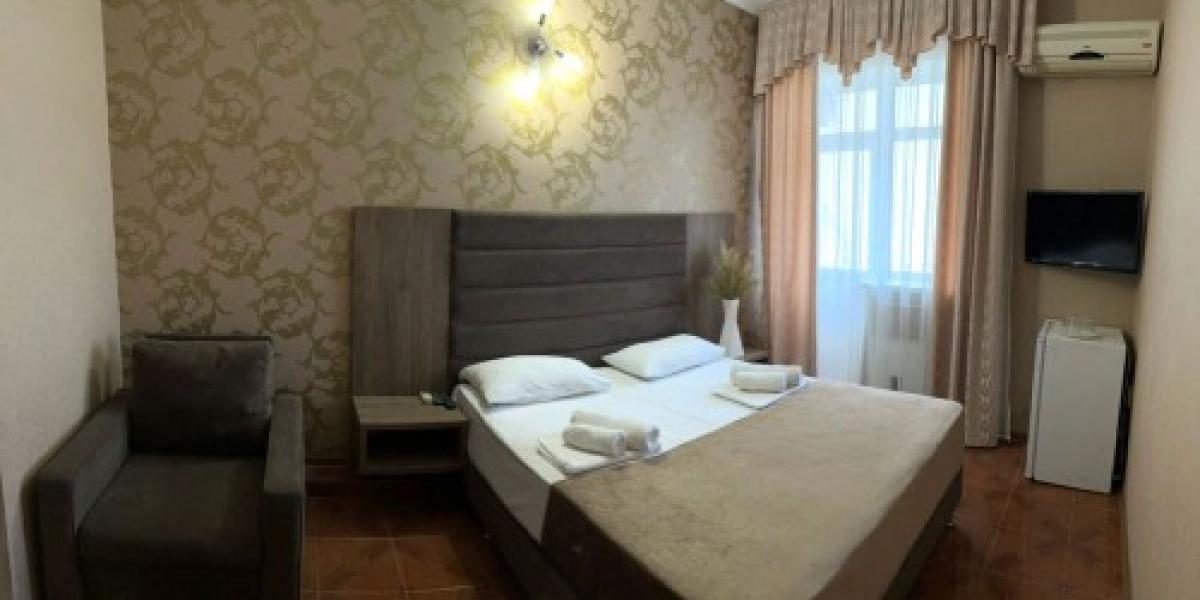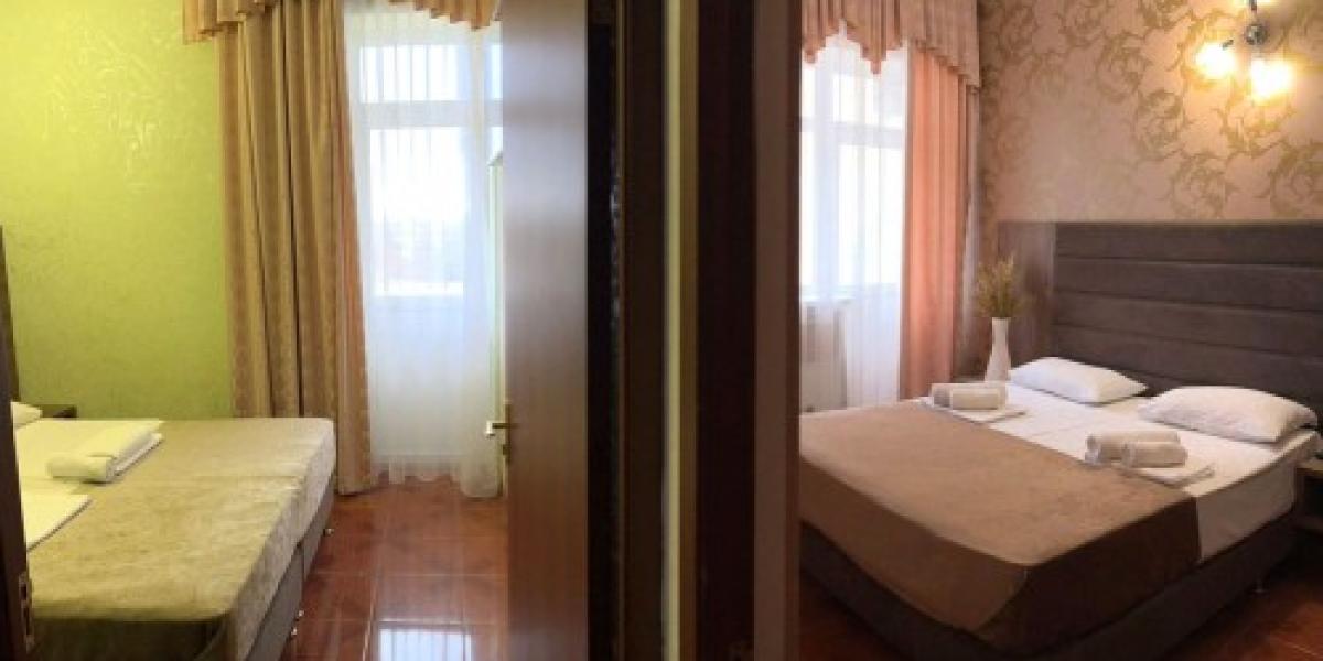 Двухкомнатный номер на 4 или 5 человек: санузел в номере (горячая и холодная вода постоянно), кровати , раскладной диван или кресло-кровати , шкаф, стулья, тумбочки, журнальный столик, вешалка, зеркало, кондиционер в каждой комнате , холодильник, телевизор в каждой комнате, интернет, балкон.