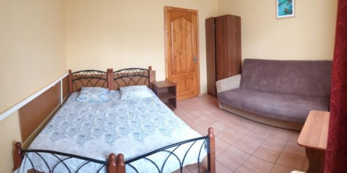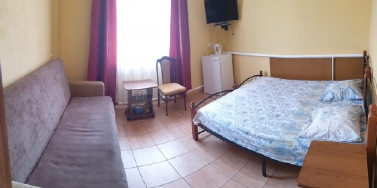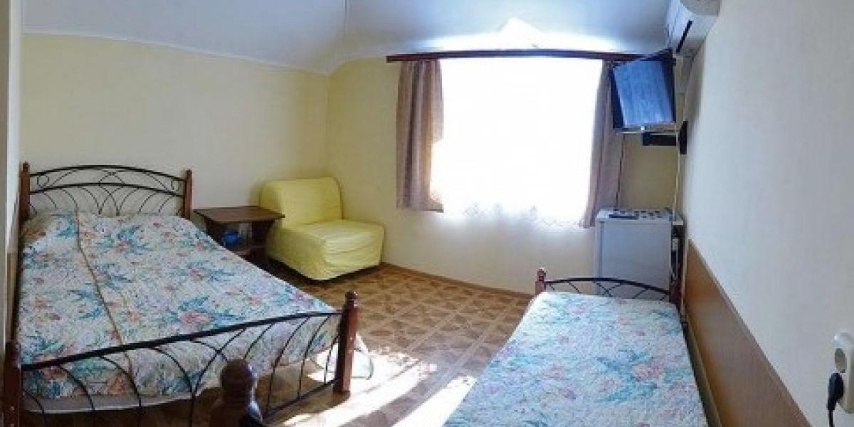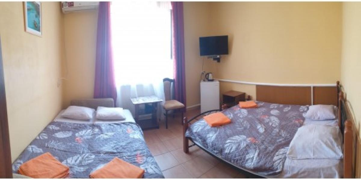 2-х комнатный четырехместный номер: санузел в номере, односпальные или двуспальная кровати, шкаф, стулья, прикроватные тумбочки, стол, зеркало, кондиционер, телевизор, интернет, холодильник.