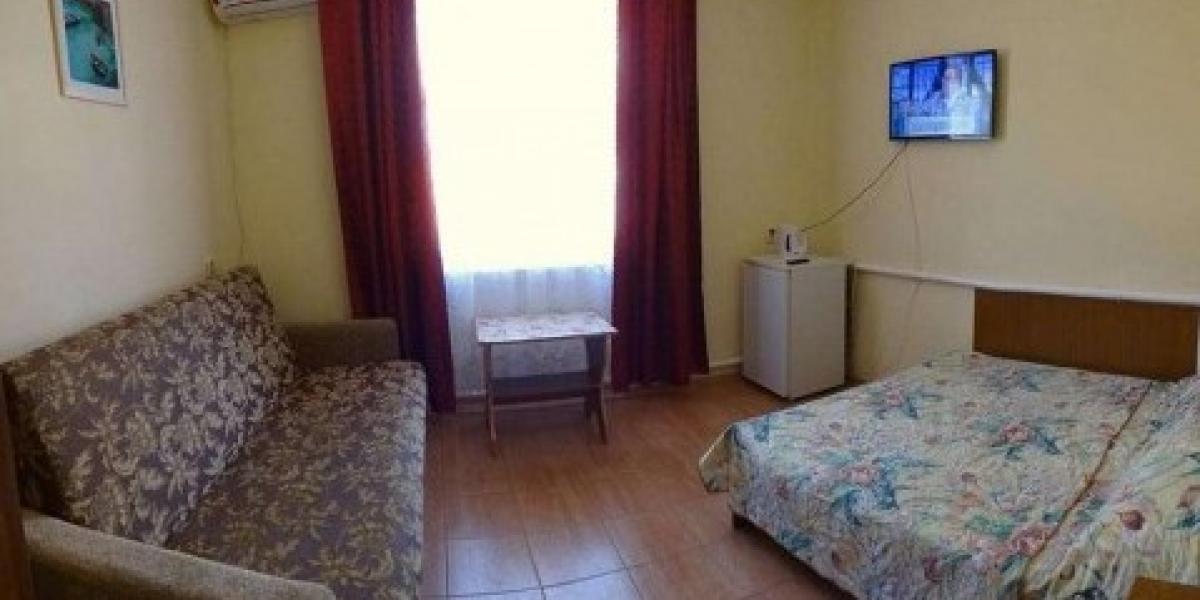 2-3-4-х местные номера стандарт: санузел в номере, односпальные или двуспальная кровати, шкаф, стулья, прикроватные тумбочки, стол, зеркало, кондиционер, телевизор, интернет, холодильник.