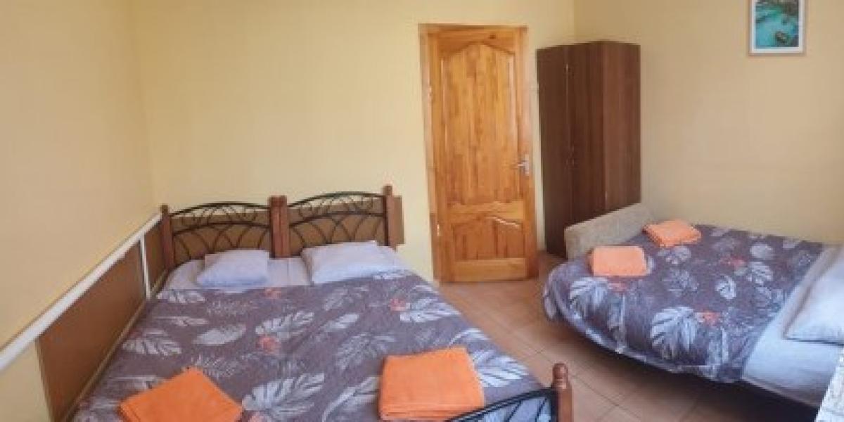 2-3-4-х местные номера эконом : санузел на этаже на 3 номера, односпальные или двуспальная кровати, шкаф, стулья, прикроватные тумбочки, стол, зеркало, вентилятор, телевизор, холодильник на общей кухне.