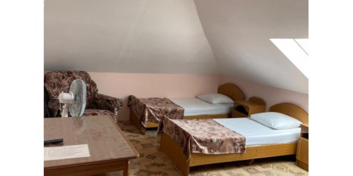 2-3-4-х местные номера эконом на 4 этаже (мансарда): на 8 номеров 2 туалета и 2 душа, в номере TV,вентилятор, электрический чайник и чайная посуда, на этаже 2 холодильника.