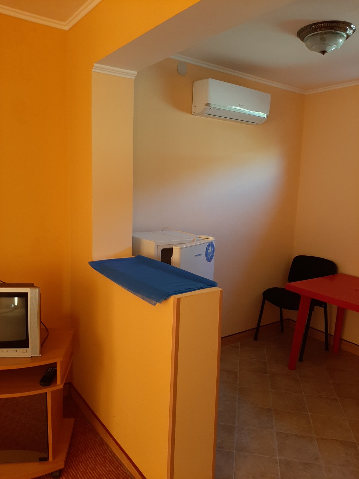- Номер с кондиционером (2 и 3 этаж) 2-х, 3-х местные номера с удобствами. В номере кондиционер, холодильник, ТВ, чайник.