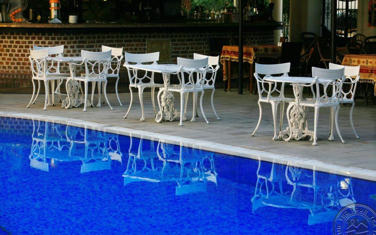 - у бассейна зонтики, шезлонги, матрасы: бесплатно