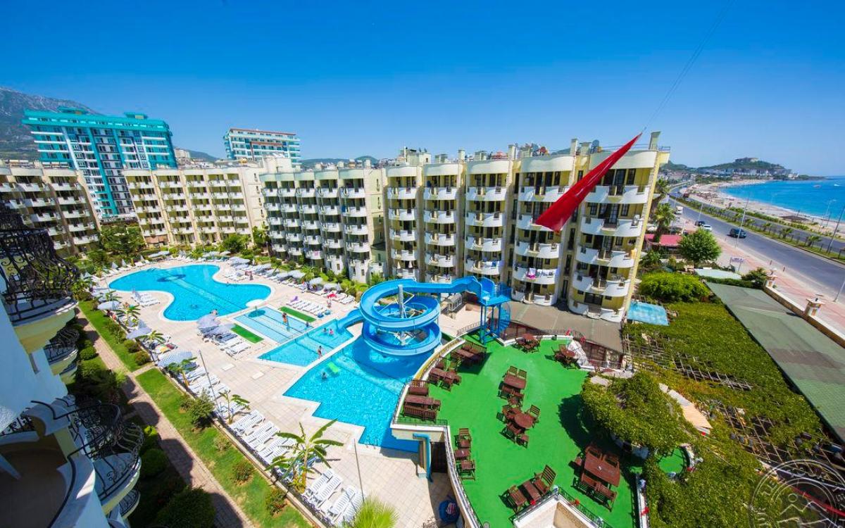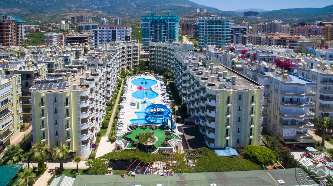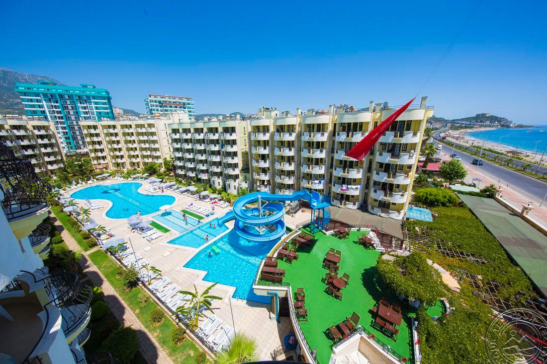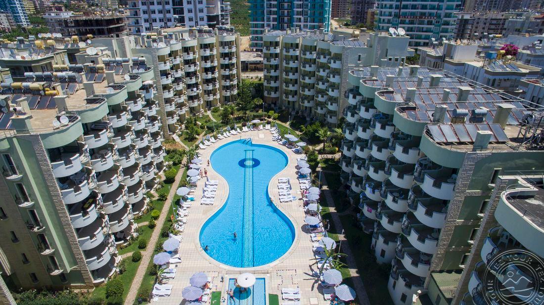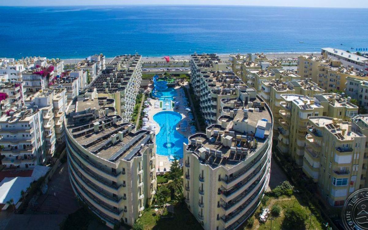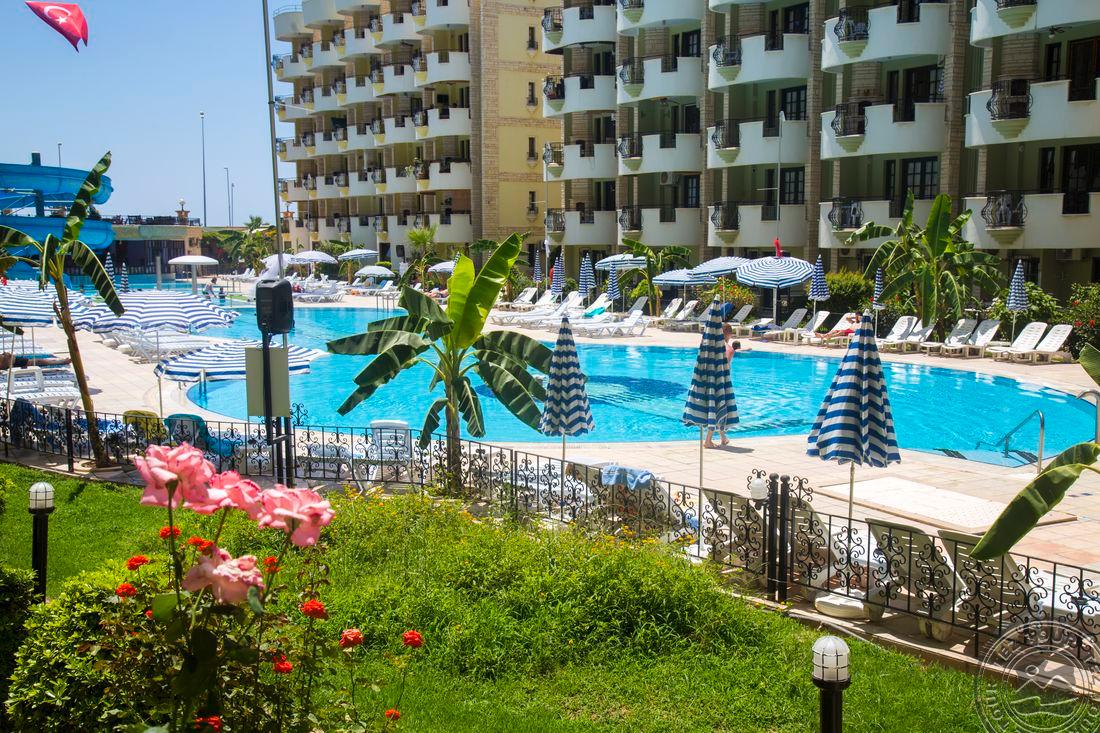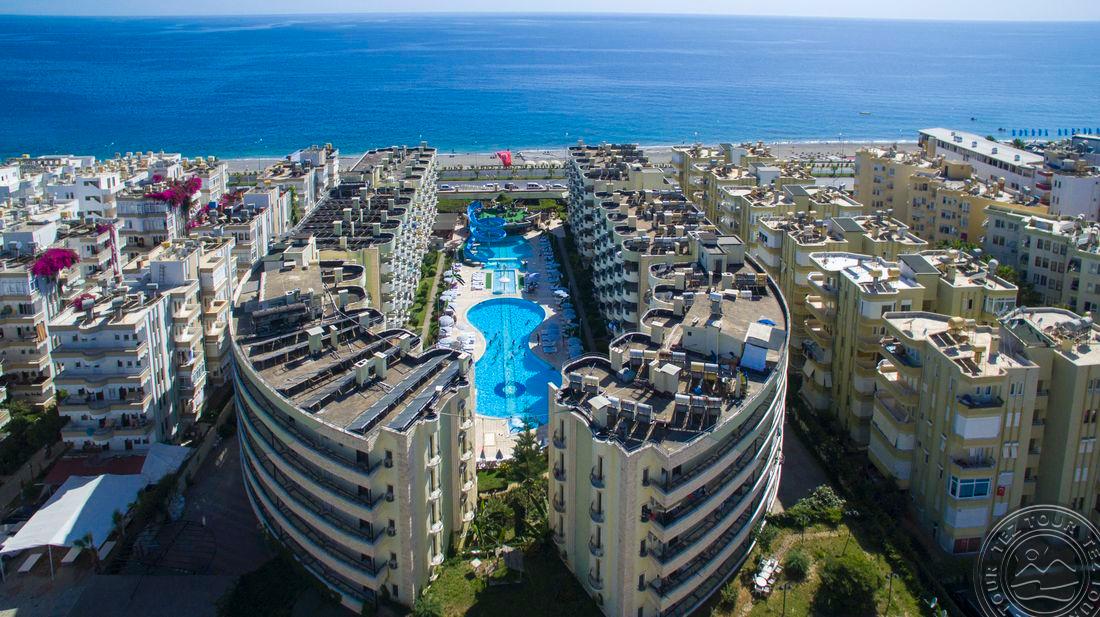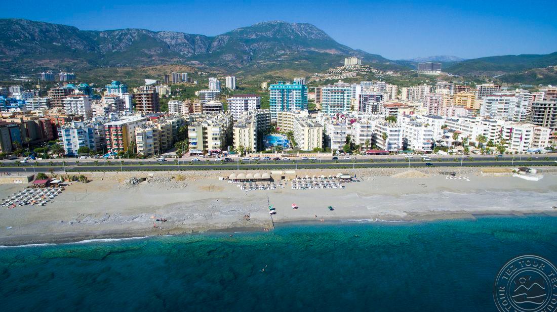 в 130 км от аэропорта г. Анталья, в 12 км от центра г. Аланья, в 2 км от поселка Махмутлар, в 50 м через дорогу от собственного пляжа по подземному переходу.