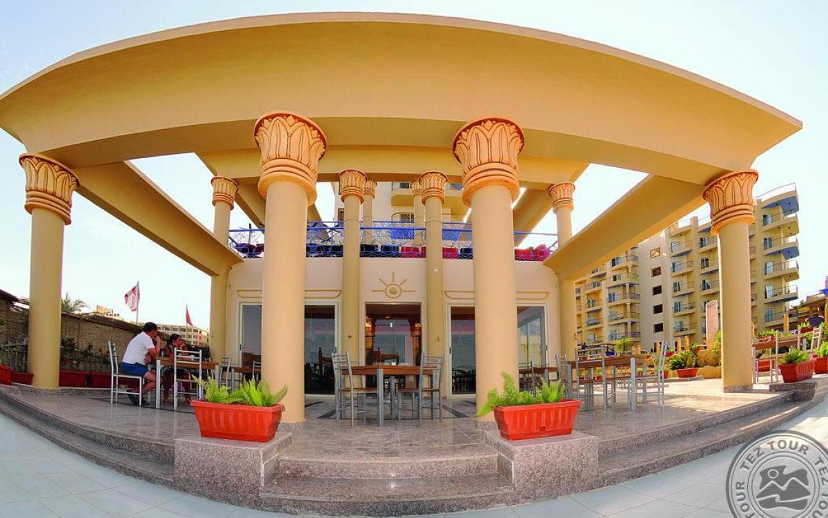 Отельный пляж оформлен плитой (платформой) - глубина сразу около 8 м. Туристы также могут пользоваться пляжем отеля King TUT.
