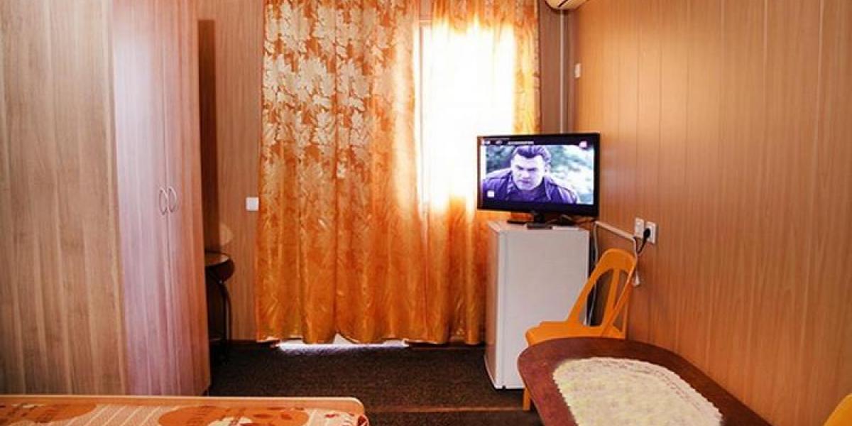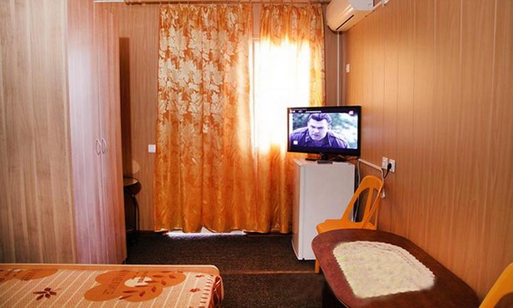Размещение: Каждый номер гостевого дома оснащен необходимым набором корпусной и мягкой мебели, туалетной комнатой с санузлом и душем (холодная и горячая вода круглосуточно), телевизором, холодильником, кондиционером (сплит-система). К услугам отдыхающим утюг и гладильная доска, мангал, барбекю, бильярд. Тенистый дворик со столиками. Пользование Wi-Fi в общественных местах для отдыхающих бесплатно.