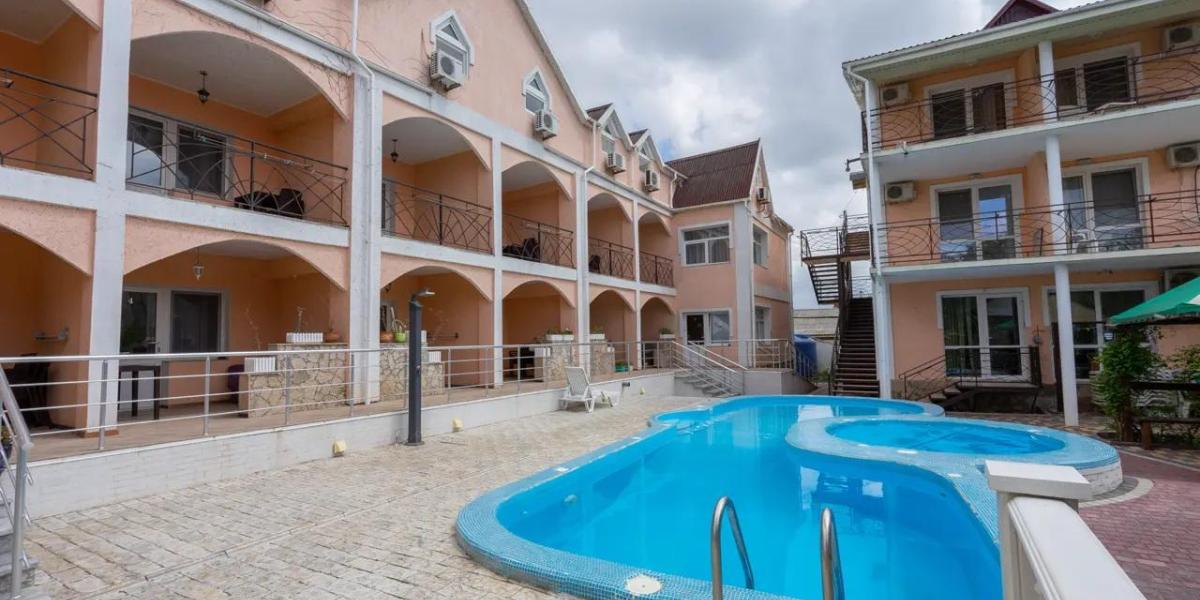 Уютный дворик с местами для отдыха, открытый бассейн. Банный комплекс: финская парная, хамам.