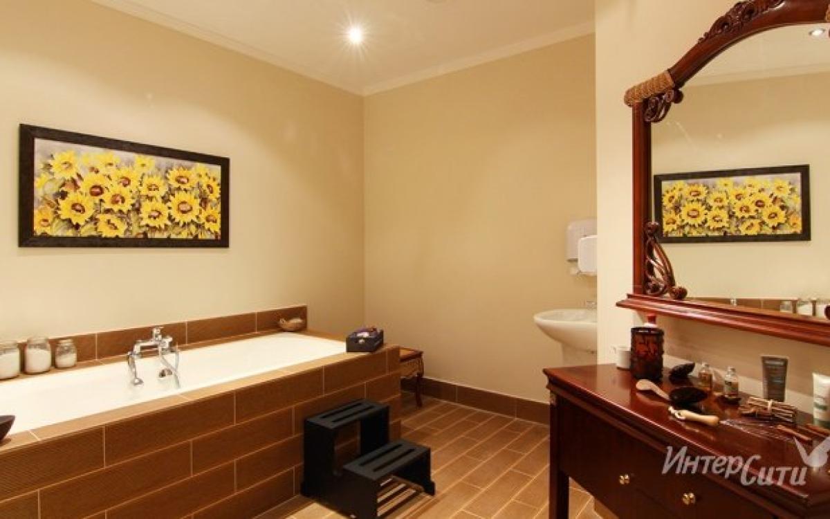 - Санузел и ванная комната с душем или ванной, биде, телефон, полотенца
