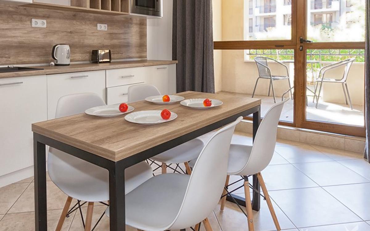 - Отдельный балкон или зеленая терраса с столом и стульями
