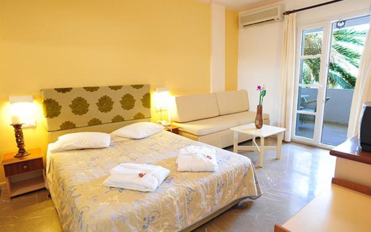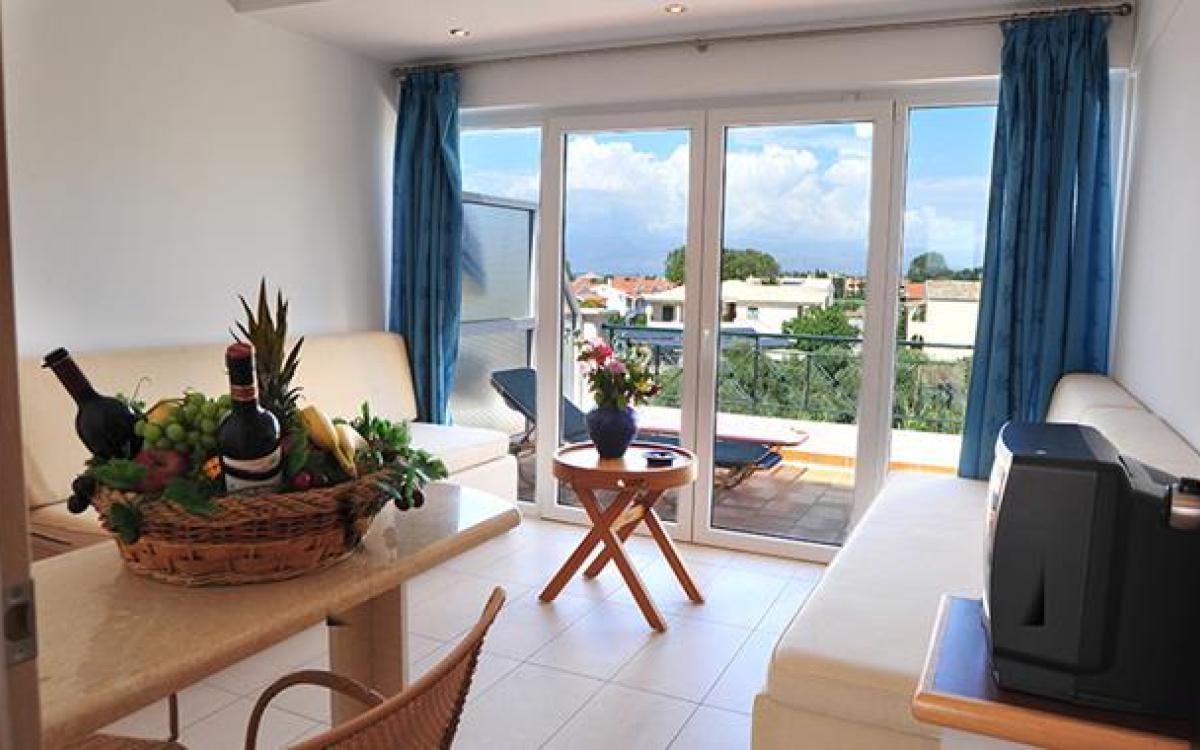 Отель расположен на первой береговой линии, в 100 м от моря, в поселке Ахарави, в 38 км от г. Корфу и аэропорта.