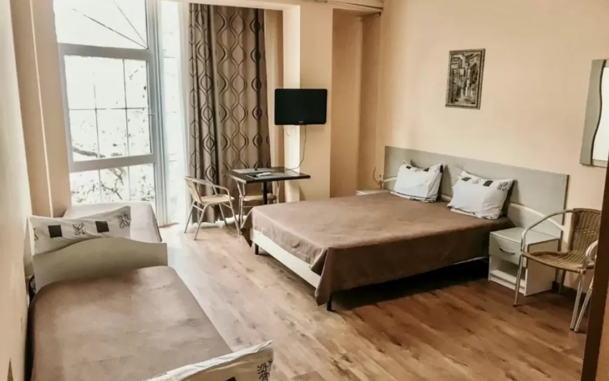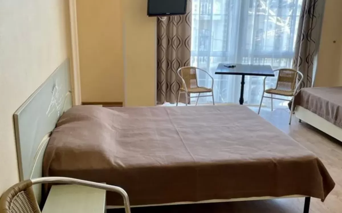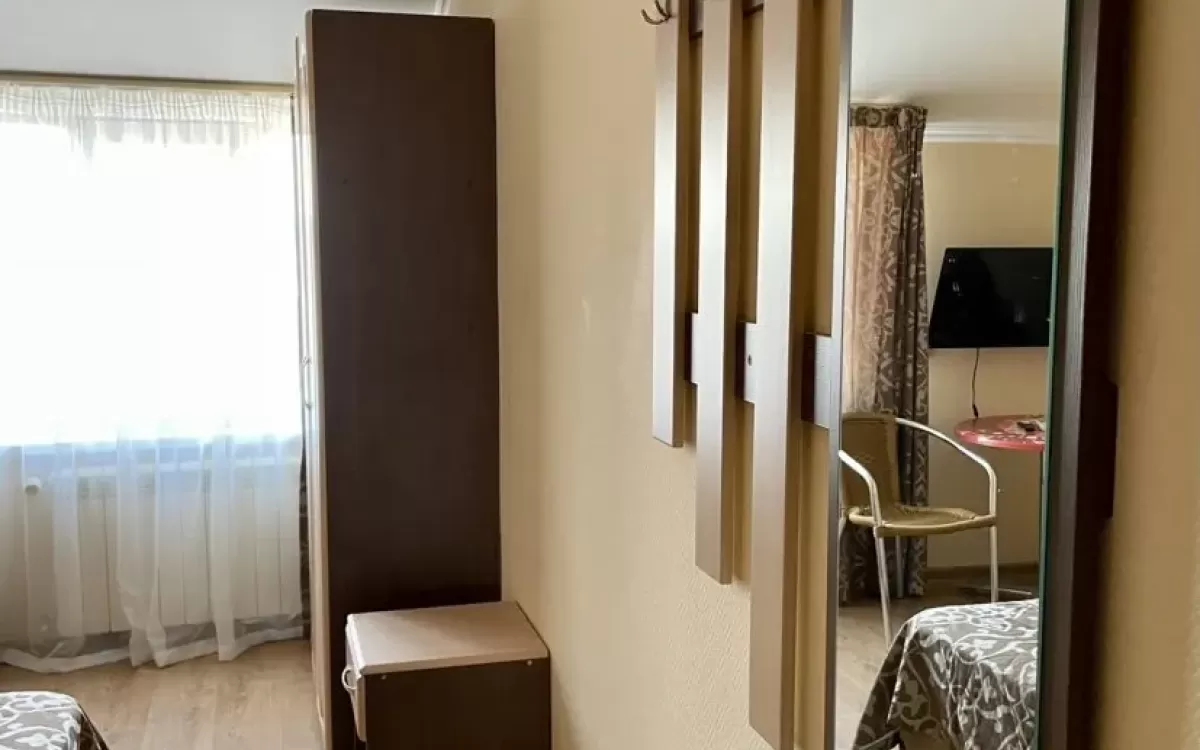 2-3-4-х местные номера стандарт: санузел в номере, односпальные (90 *200 ) или двуспальные кровати (160*200), шкаф, стулья, прикроватные тумбочки, стол, зеркало, кондиционер, телевизор, интернет, косметические принадлежности, комплект полотенец. Холодильники на этажах (в семейном –в номере). Дополнительное место- еврораскладушка.