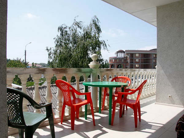 Размещение: 2х-3х местные стандартные номера. В номерах современная мебель, вместительный шкаф, телевизор, холодильник, Wi-Fi, санузел. Комнаты кондиционированы. Смена белья проводится 1 раз в 7 дней. На террасе установлена пластиковая мебель.