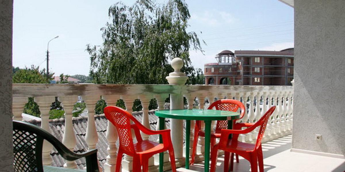 Размещение: 2х-3х местные стандартные номера. В номерах современная мебель, вместительный шкаф, телевизор, холодильник, Wi-Fi, санузел. Комнаты кондиционированы. Смена белья проводится 1 раз в 7 дней. На террасе установлена пластиковая мебель.