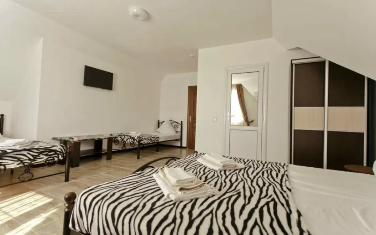 В 3-х, 4-х, 5-ти местных комфортабельных номерах (возможен вариант и двухместного размещения). Номера со всеми удобствами (душ, умывальник, туалет), телевизор, холодильник, кондиционер, фен.
