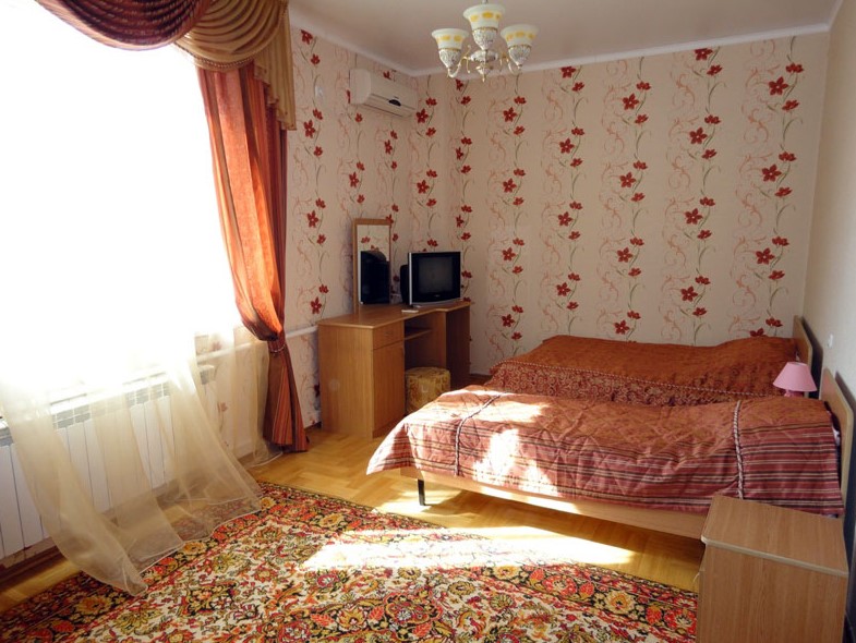 2-3-4-х местные номера со всеми удобствами (стандарт): санузел в номере,односпальные или двуспальная кровати, диван-кровать, кресло-кровать, кресла, шкаф, стулья, прикроватные тумбочки, журнальный столик, туалетный столик, вешалка, зеркало,кондиционер, холодильник, телевизор, Wi-Fi интернет, балкон (наличие уточнять).